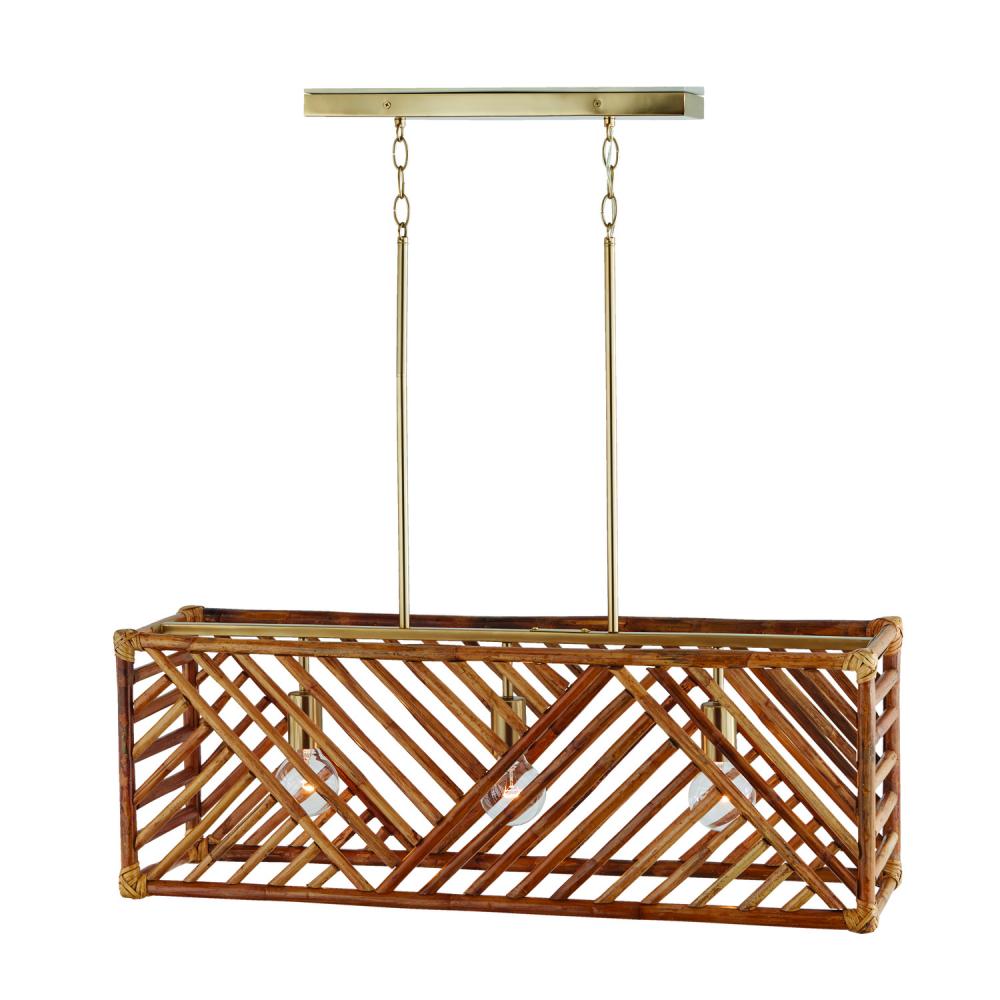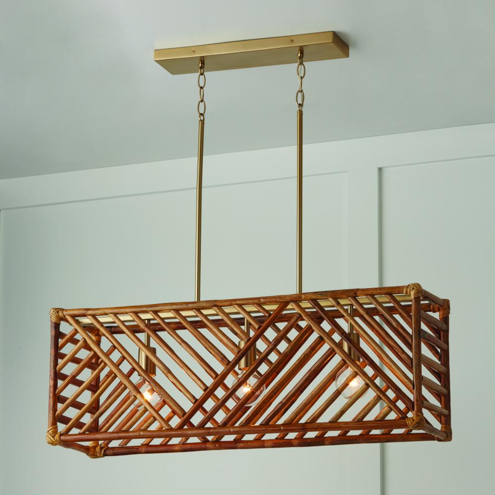 35.5"W x 12.5"H 3-Light Island in Matte Brass with Natural Bamboo