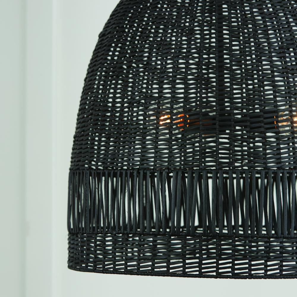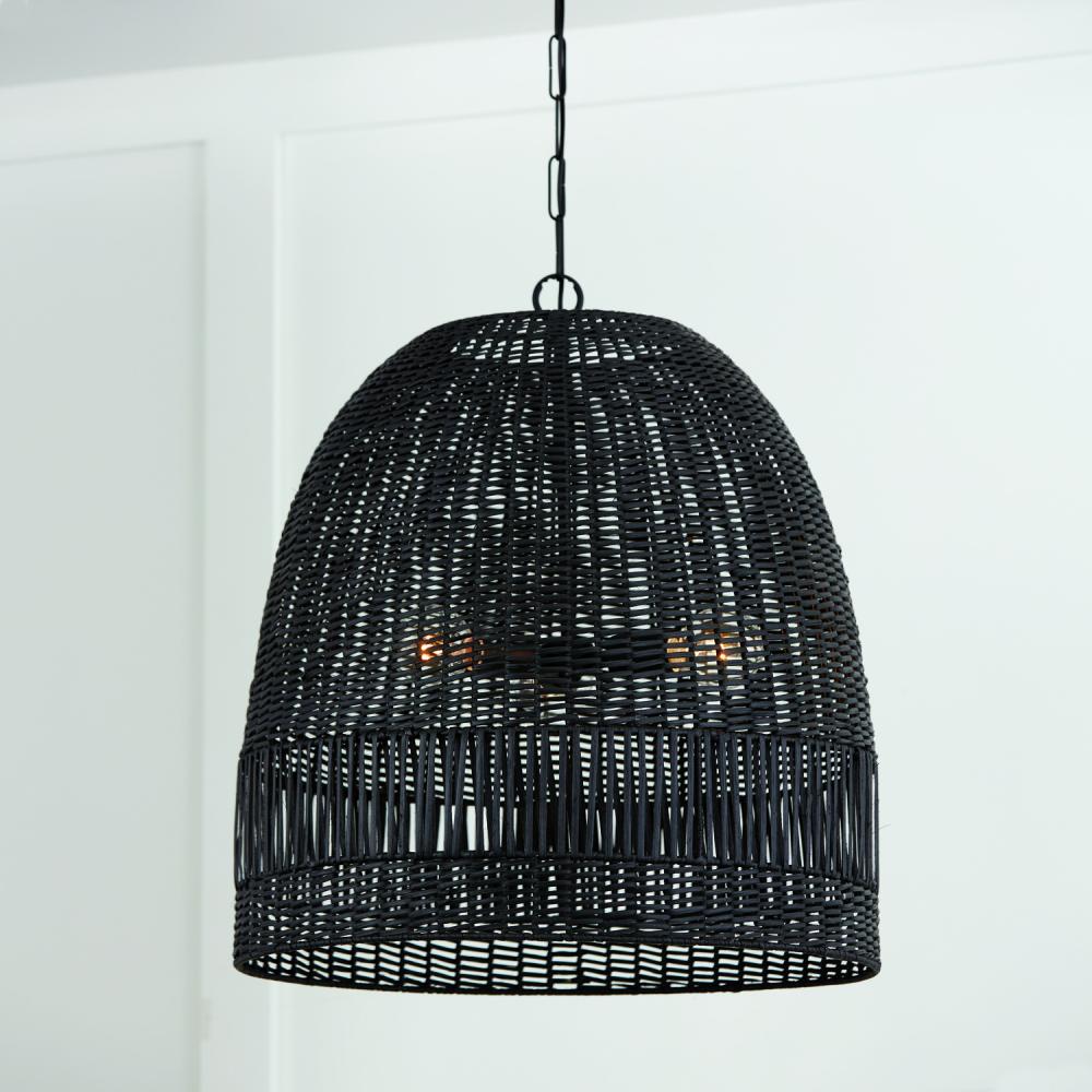24"W x 26.75"H 3-Light Pendant in Matte Black with Hand-Woven Painted Rattan Basket