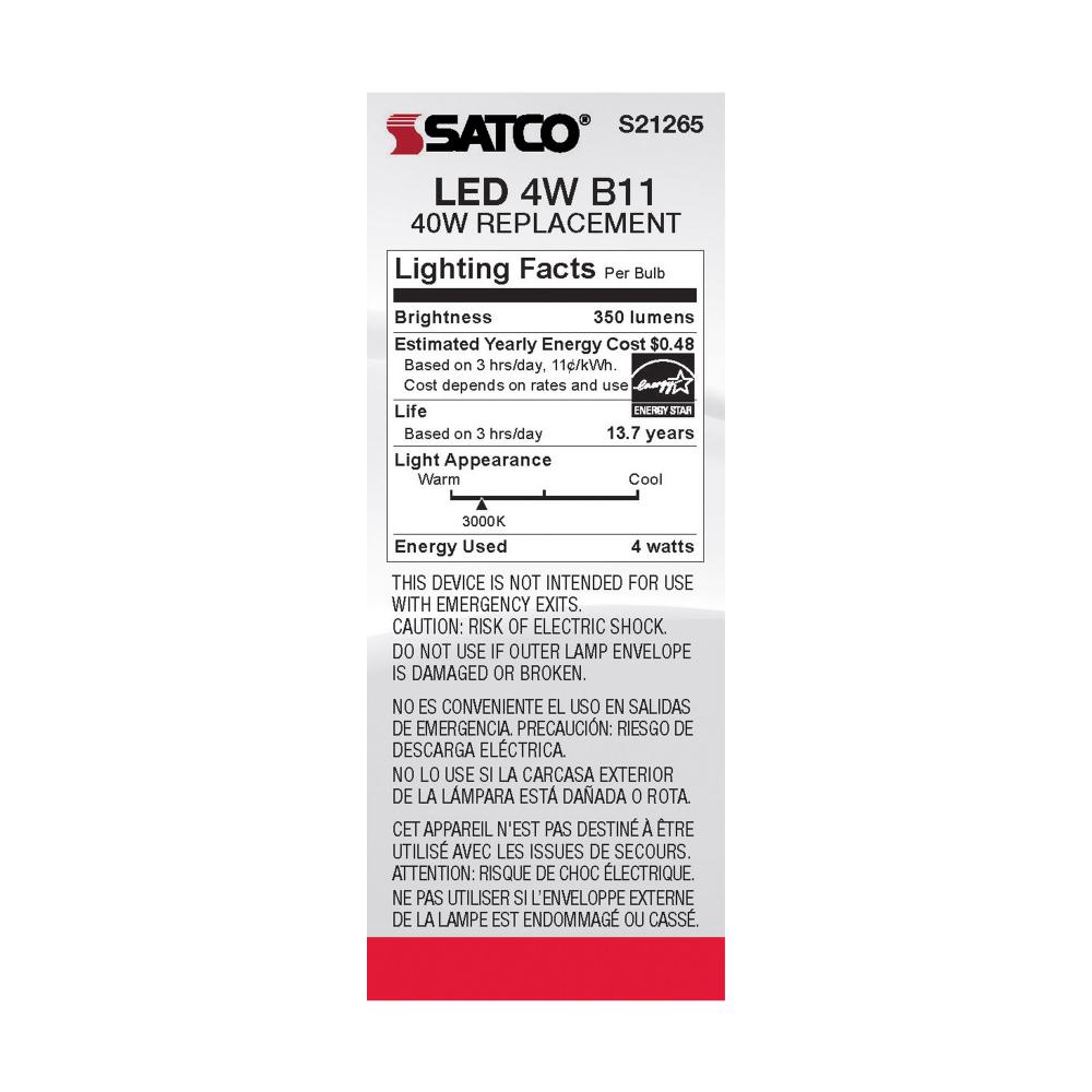 Satco's S21265 4-watt LED lamp is traditional, yet contemporary with its vintage style and energy saving LED technology. Elegantly illuminate any room in the house with this dimmable, clear bulb. Sophisticated and modern, this lamp delivers 15,000 hour
