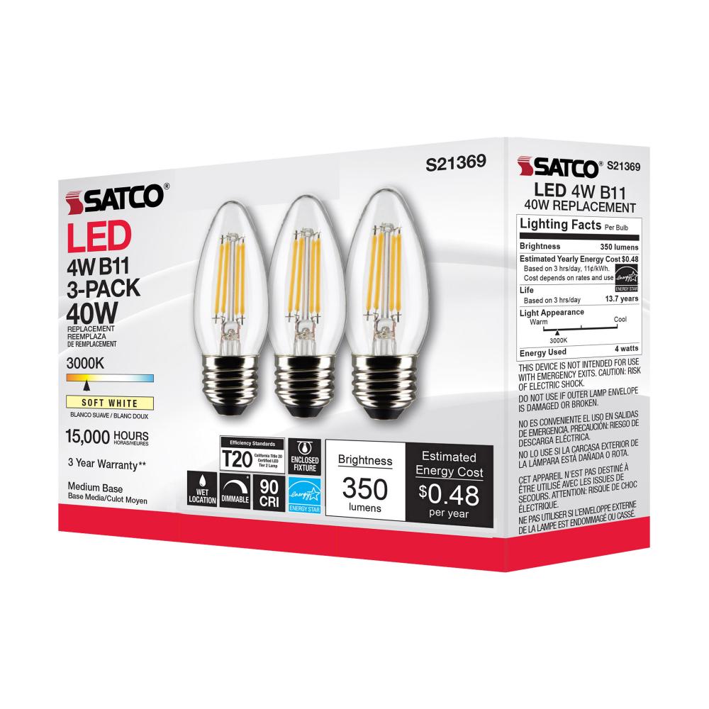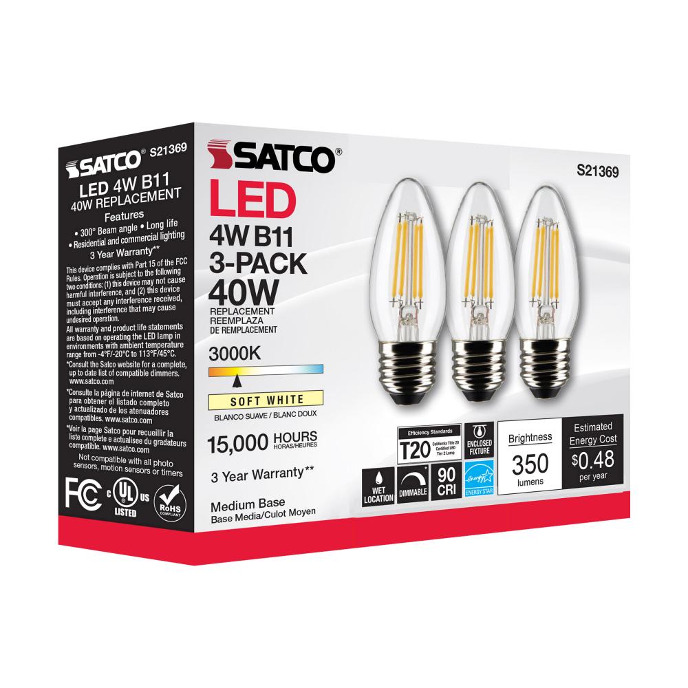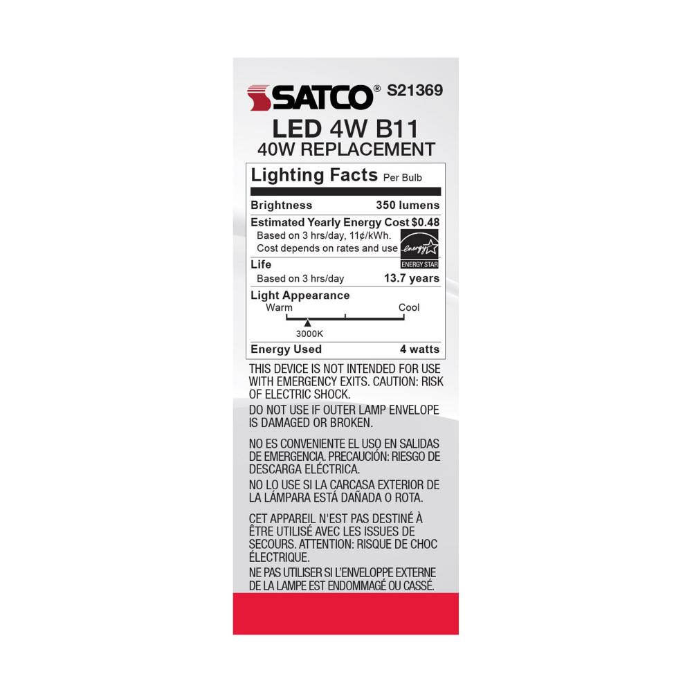 Satco's S21369 4-watt, LED lamp is traditional, yet contemporary with its vintage style and energy saving LED technology. Elegantly illuminate any room in the house with this dimmable, clear bulb. Sophisticated and modern, this lamp delivers 15,000 hou