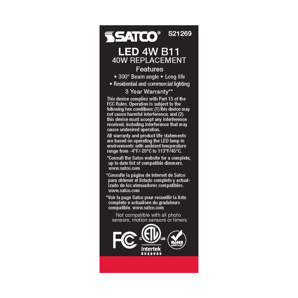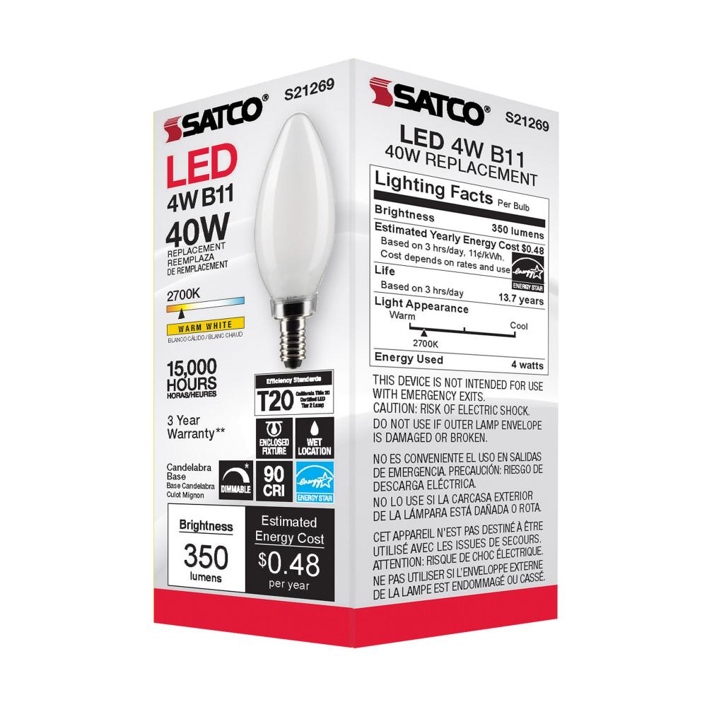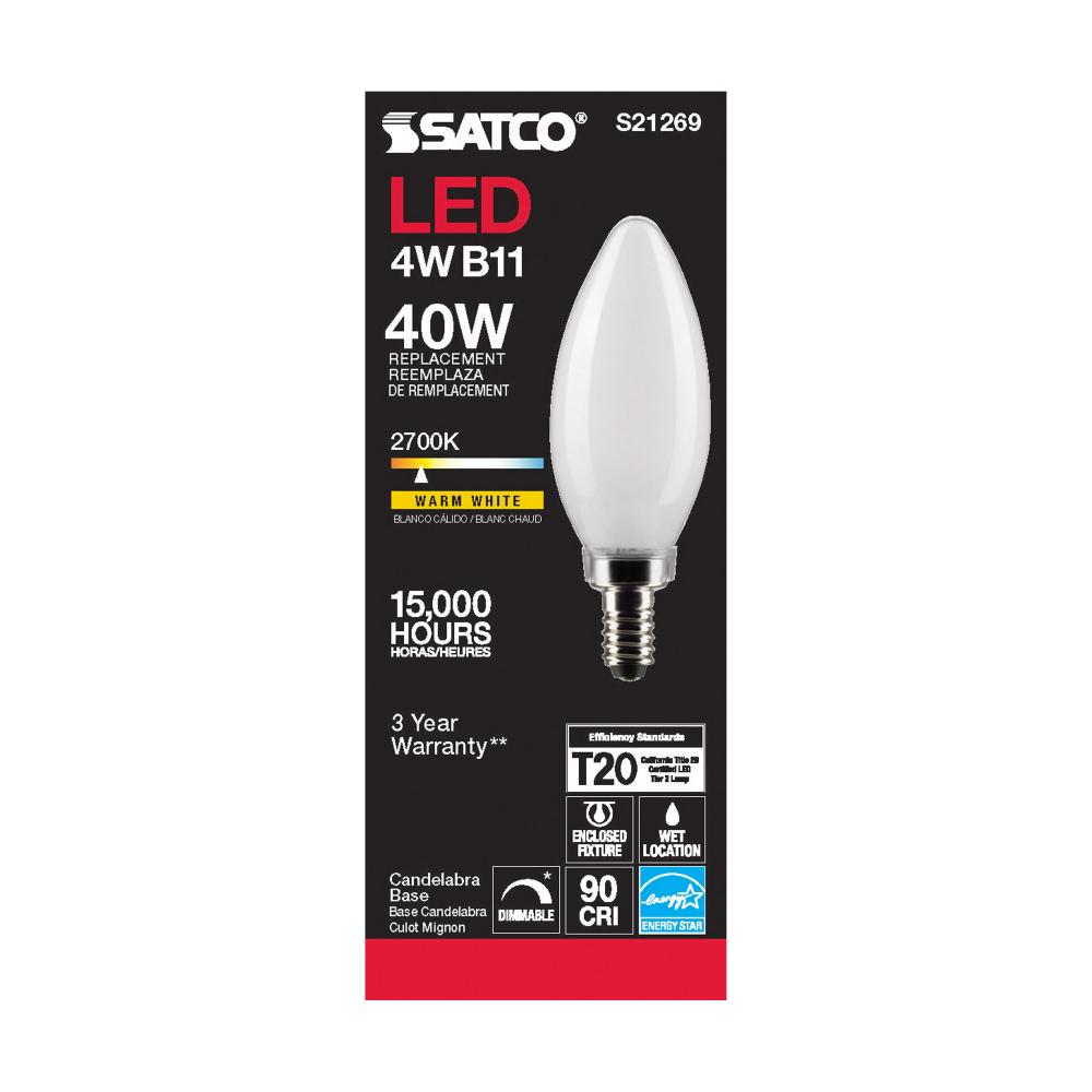 Satco's 4-watt LED lamp is traditional, yet contemporary with its vintage style and energy saving LED technology. Elegantly illuminate any room in the house with this dimmable, frost finished bulb. Sophisticated and modern, this lamp delivers 15,000 ho
