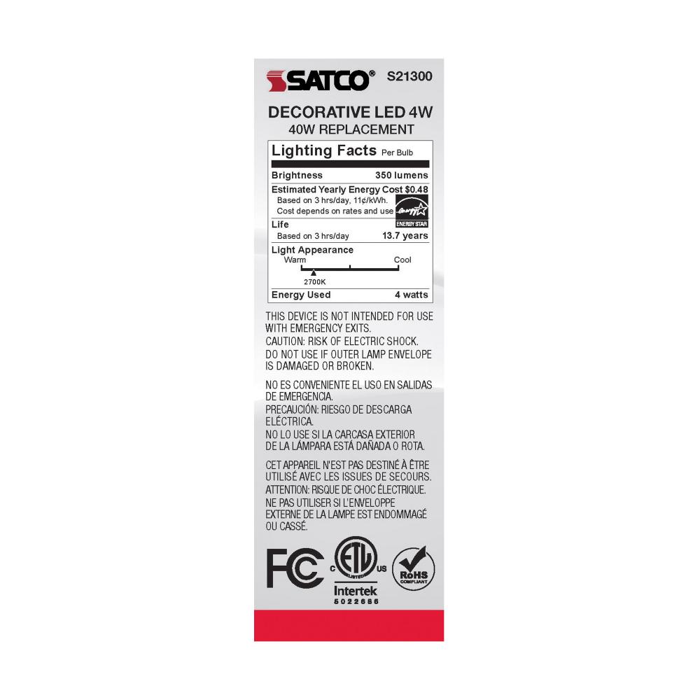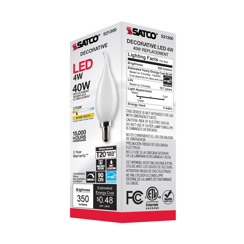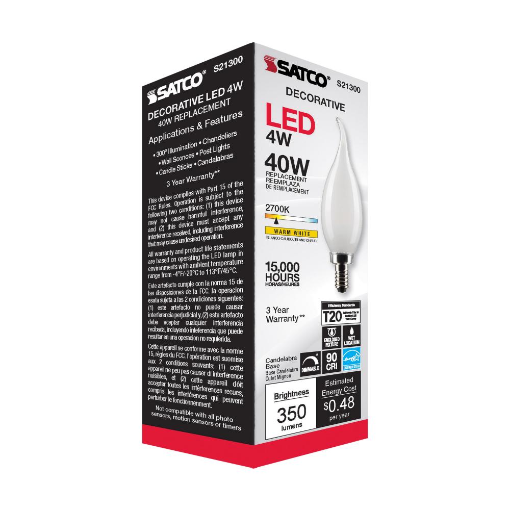 Satco's S21300 4-watt LED lamp is traditional, yet contemporary with its sleek finish and energy saving LED technology. Elegantly illuminate any room in the house with this dimmable, frost finished bulb. Sophisticated and modern, this lamp delivers 15,