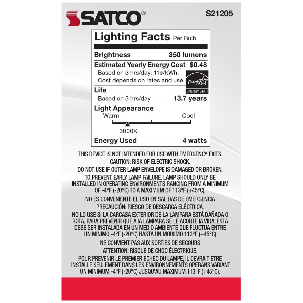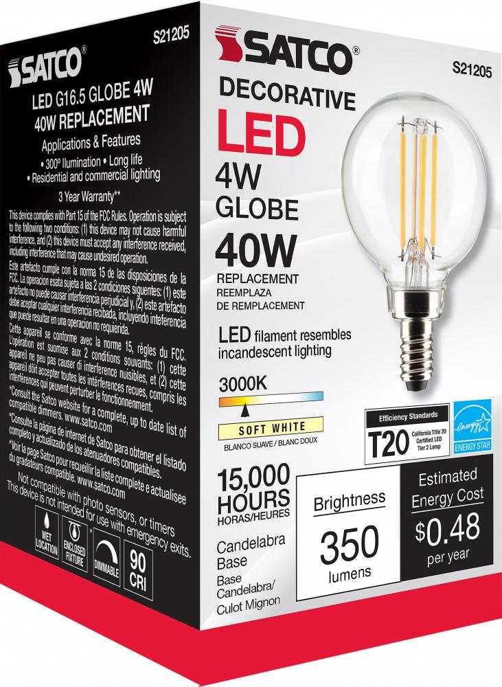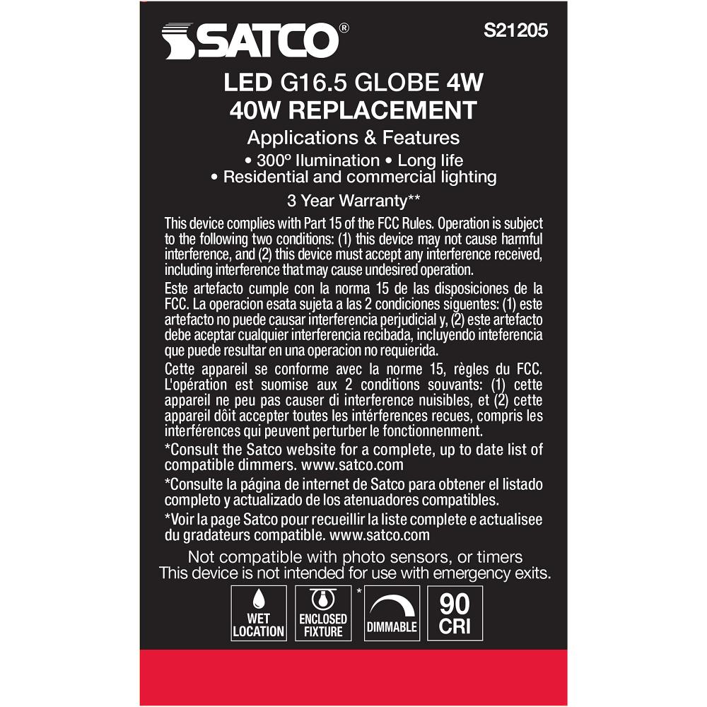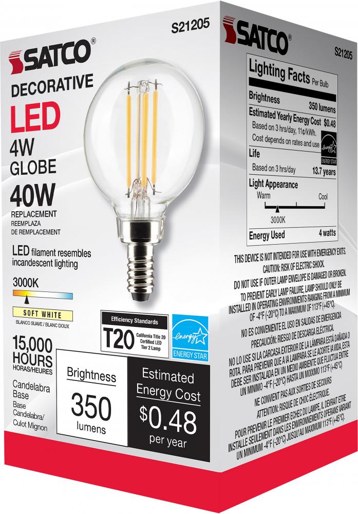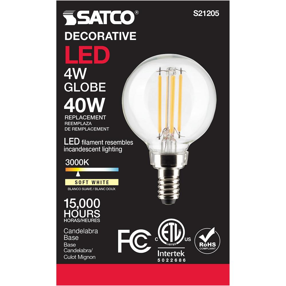 Satco's S21205 4-watt LED lamp is traditional, yet contemporary with its vintage style and energy saving LED technology. Elegantly illuminate any room in the house with this dimmable, globe shaped bulb. Sophisticated and modern, this lamp delivers 15,0