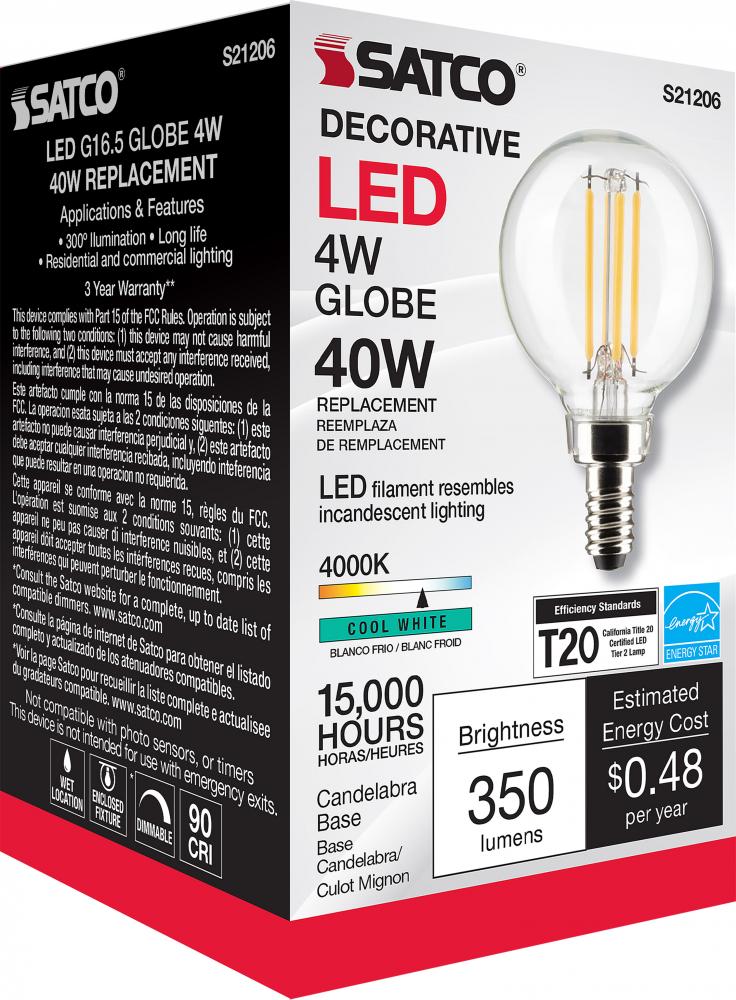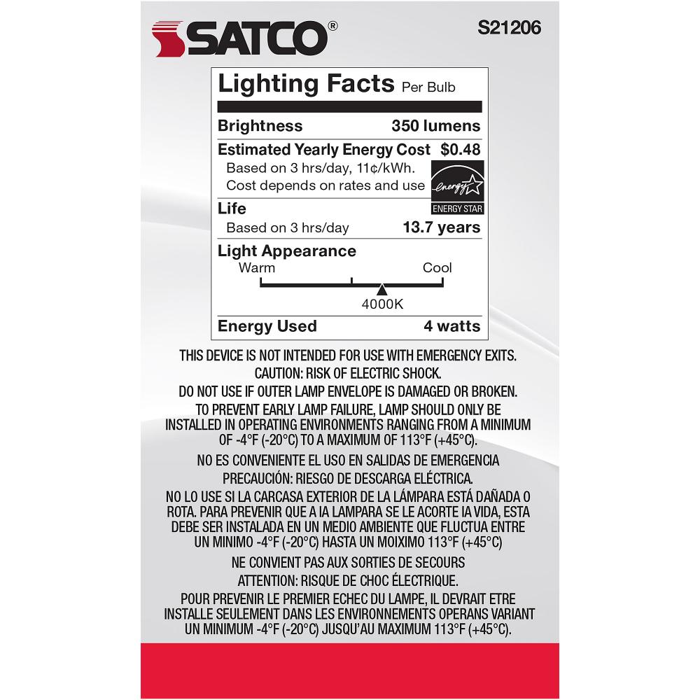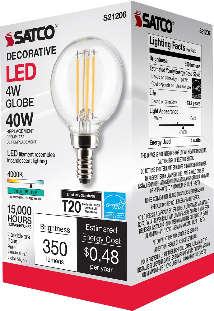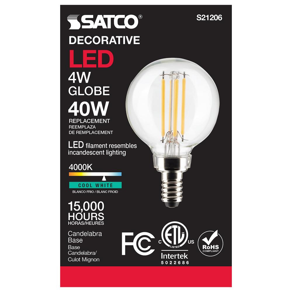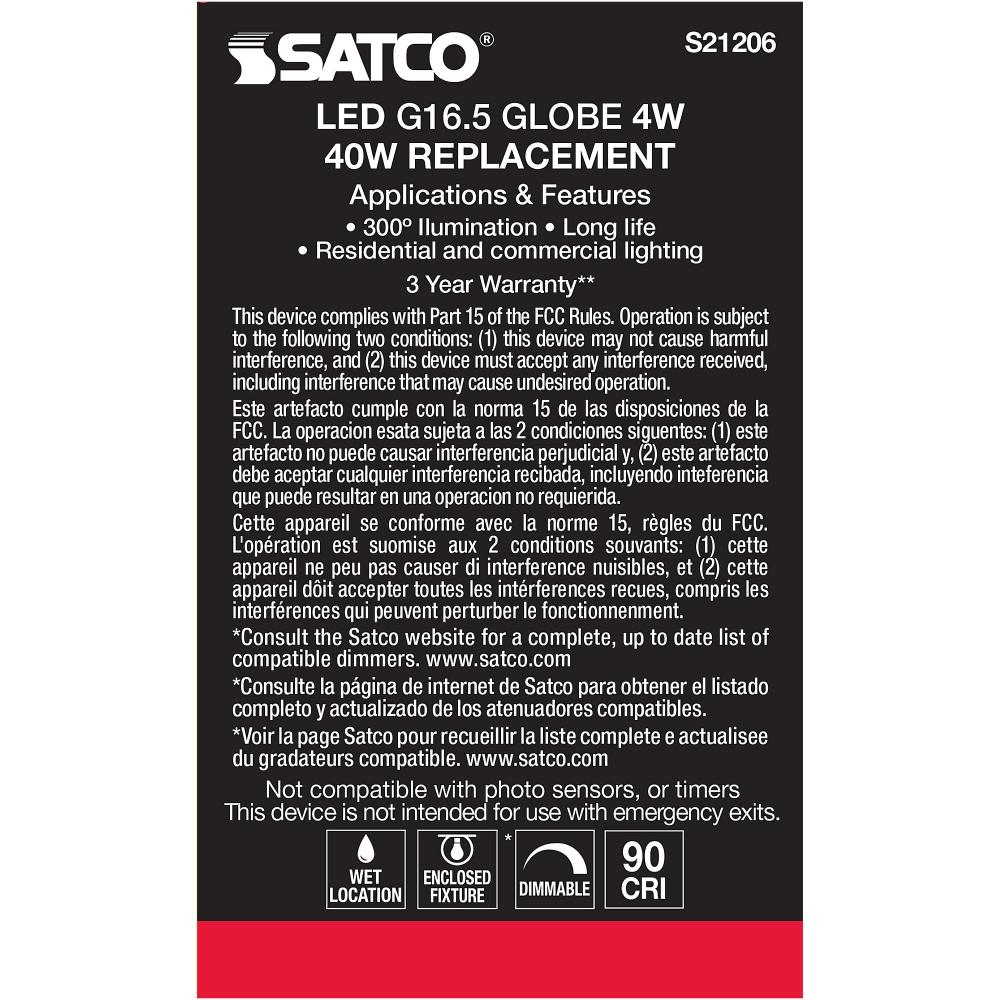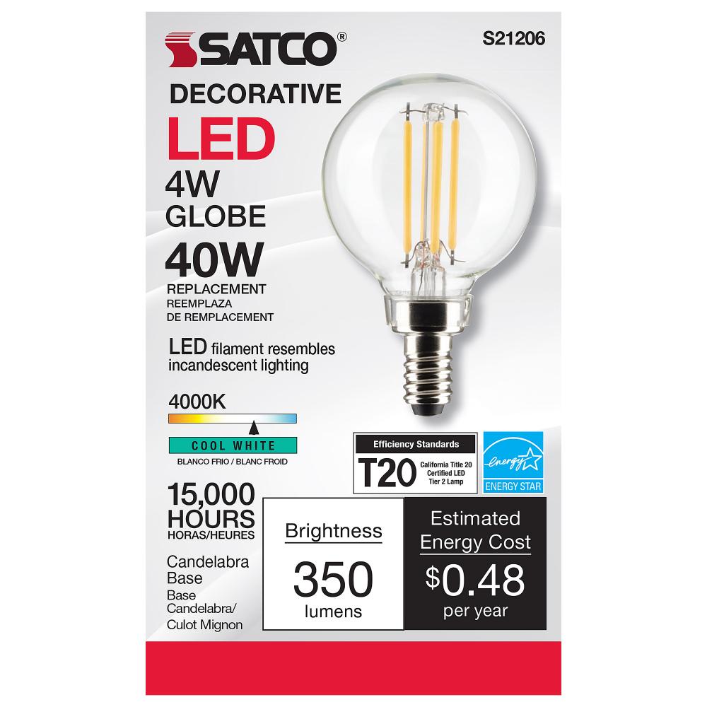 Satco's S21206 4-watt LED lamp is traditional, yet contemporary with its vintage style and energy saving LED technology. Elegantly illuminate any room in the house with this dimmable, globe shaped bulb. Sophisticated and modern, this lamp delivers 15,0