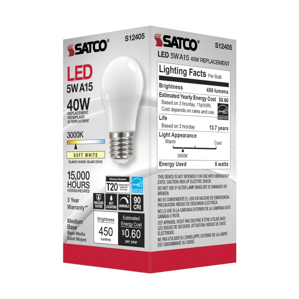 The most common, useful lamps on the market are now suitable for use nationwide with their 90 CRI T20 CEC rating. Satco's S12405 A15, 3000K, 5-watt soft white lamp incorporates all the latest LED technologies for superior lumen output, efficiency and l
