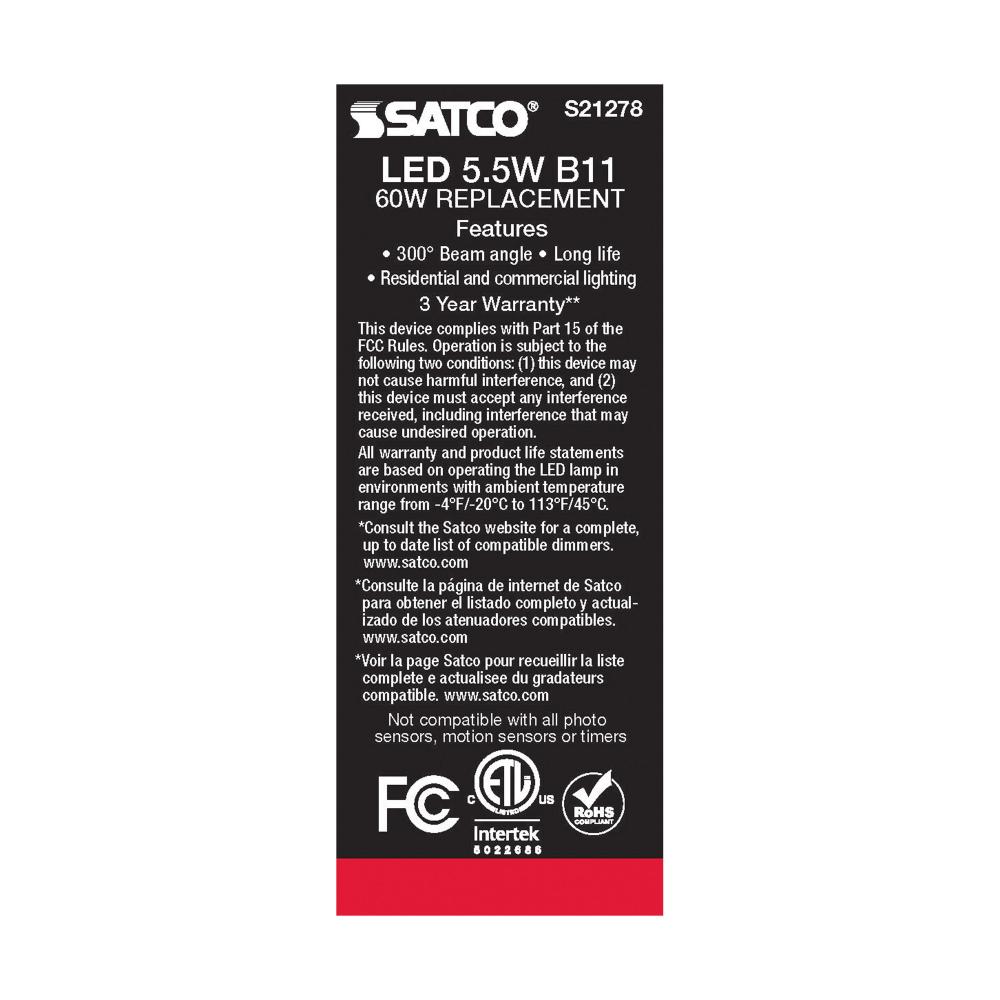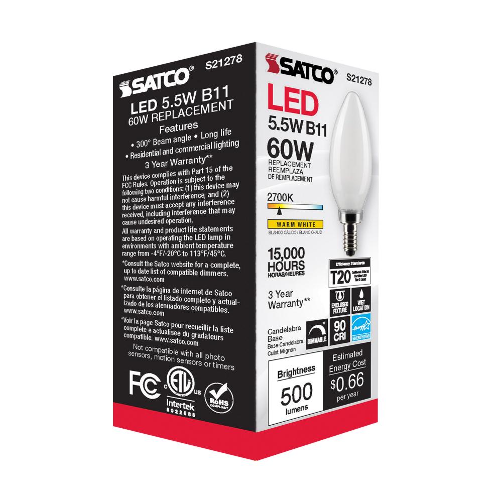 Satco's S21278 5.5-watt LED lamp is traditional, yet contemporary with its sleek finish and energy saving LED technology. Elegantly illuminate any room in the house with this dimmable, frost finished bulb. Sophisticated and modern, this lamp delivers 1