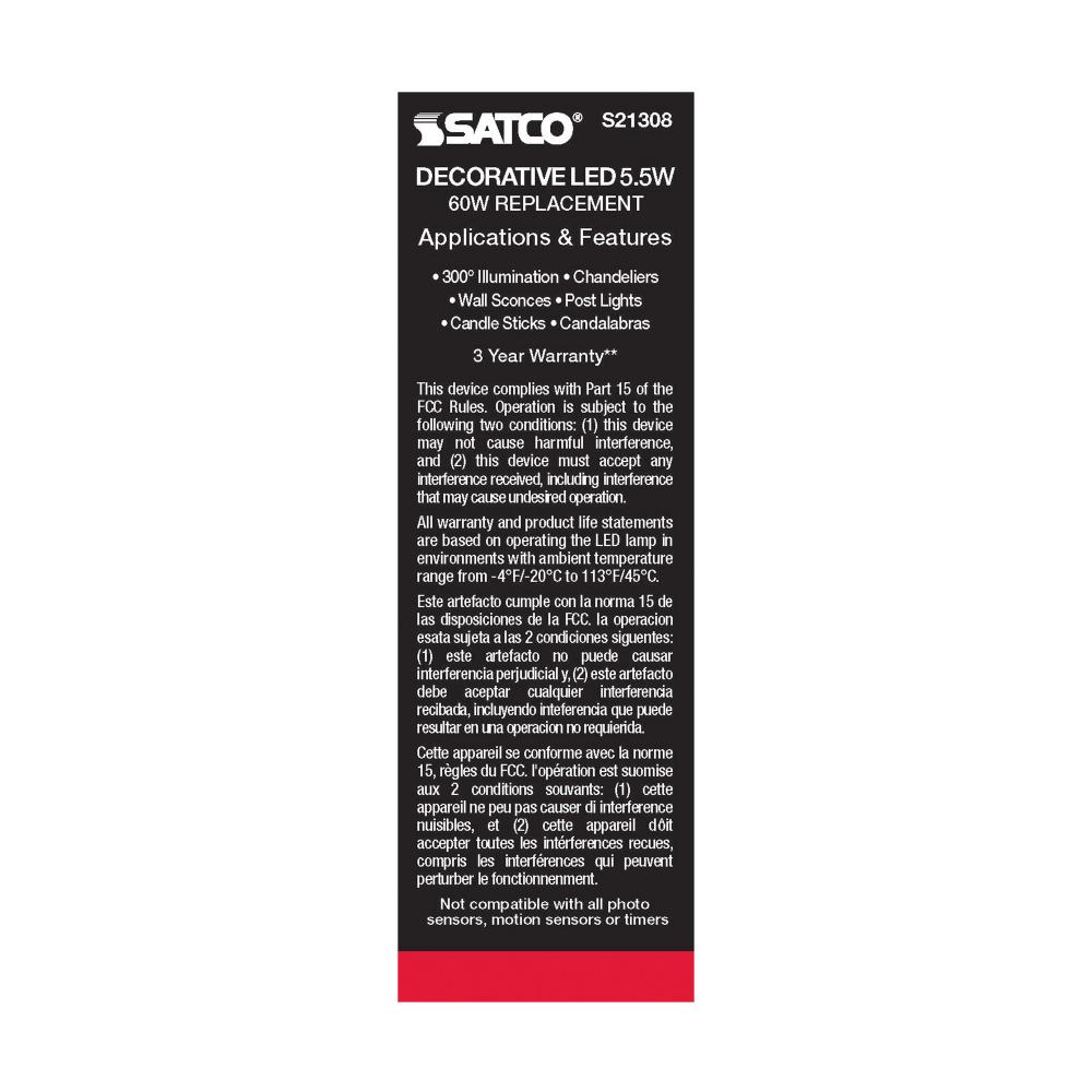 Satco's S21308 5.5-watt LED lamp is traditional, yet contemporary with its sleek finish and energy saving LED technology. Elegantly illuminate any room in the house with this dimmable, frost finished bulb. Sophisticated and modern, this lamp delivers 1