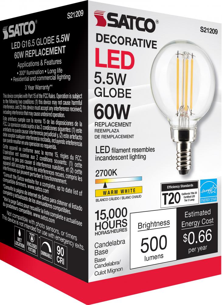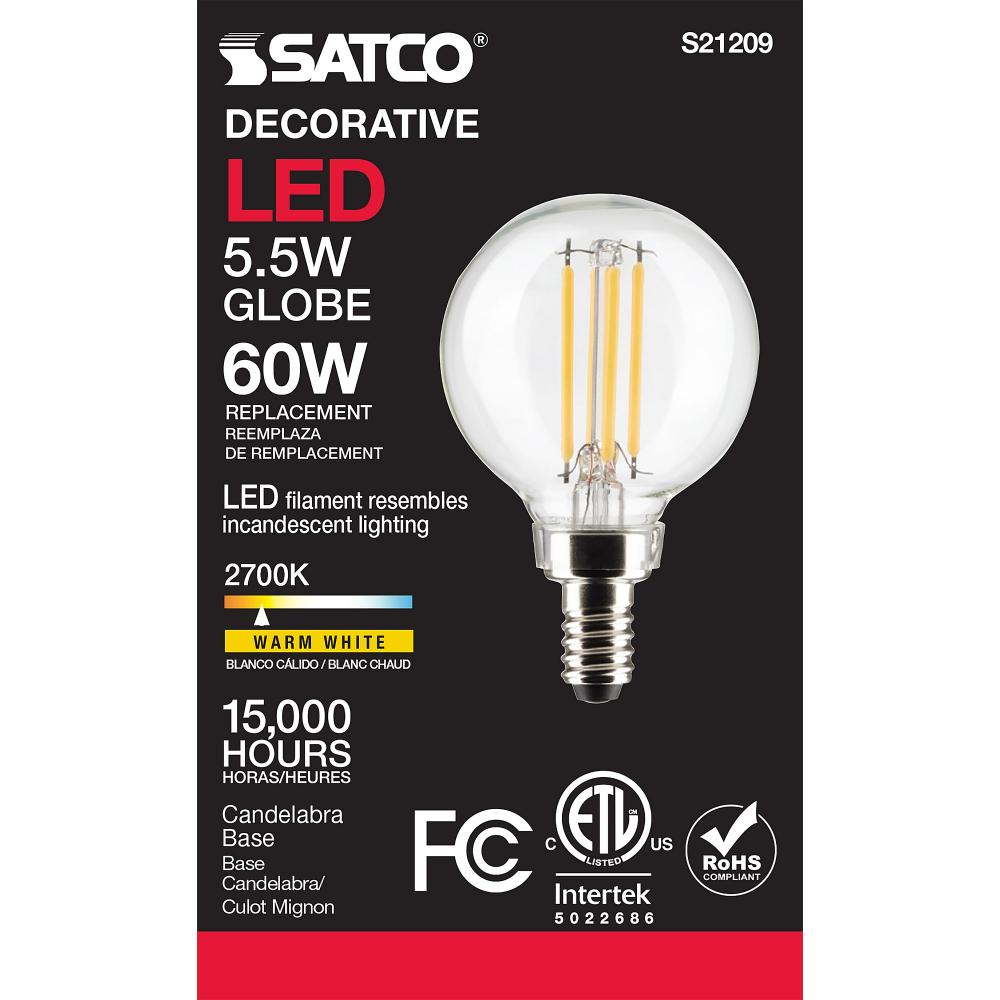 Satco's 5.5-watt LED lamp is traditional, yet contemporary with its vintage style and energy saving LED technology. Elegantly illuminate any room in the house with this dimmable, globe shaped bulb. Sophisticated and modern, this lamp delivers 15,000 ho