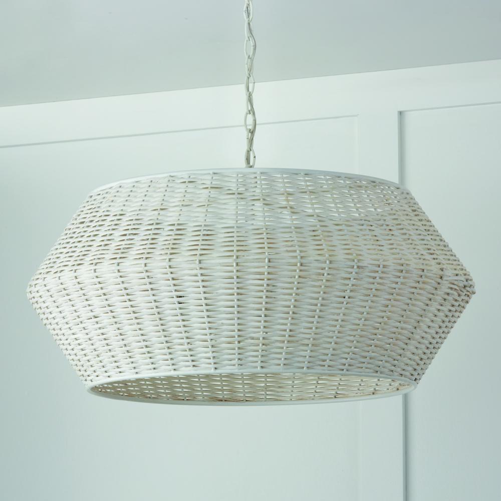 29.5"W x 14.75"H 6-Light Pendant in Chalk White with Hand-Woven Painted Rattan