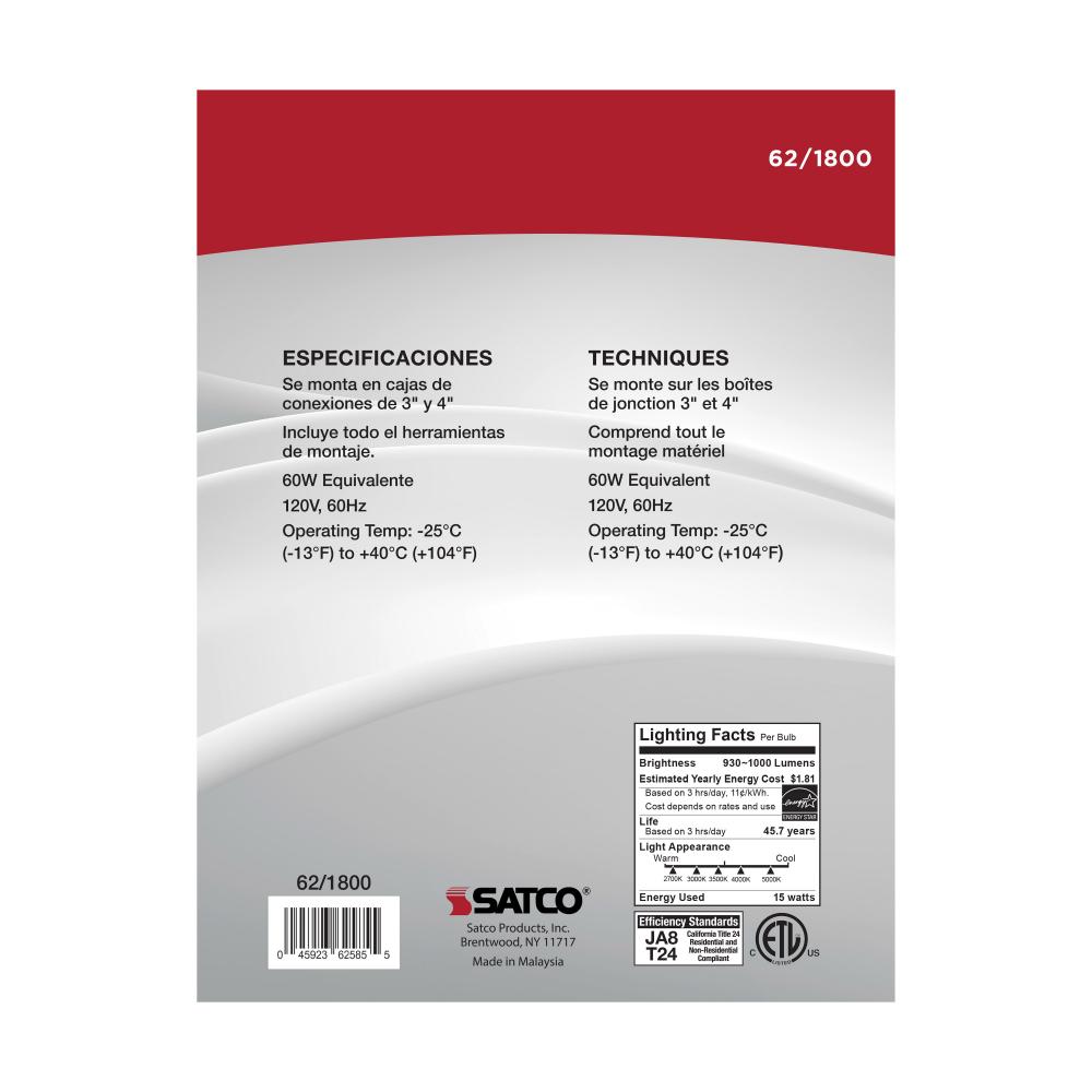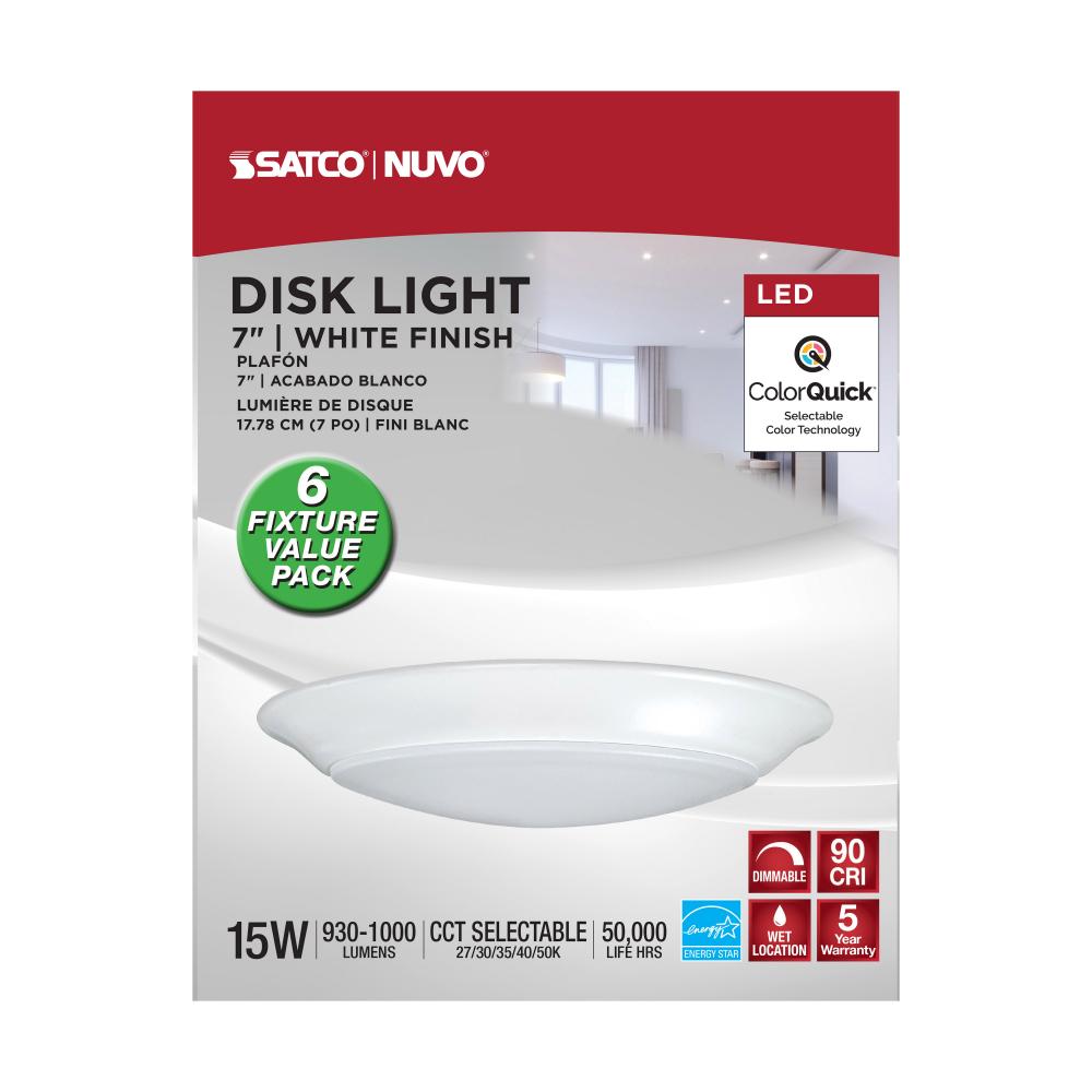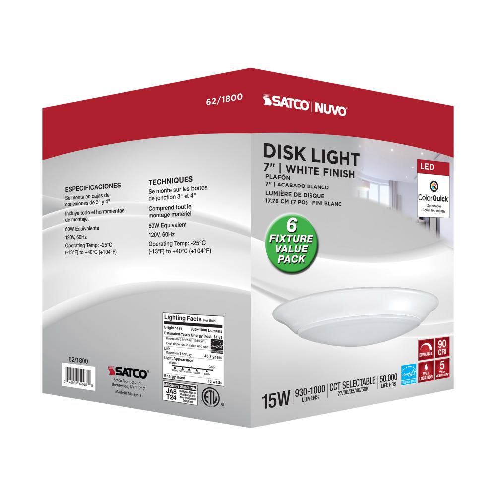 Introducing SATCO NUVO's 62-1800 Contractor Packs CCT Selectable Disk Light, a 7-inch, 15-watt solution designed to fit perfectly in various applications. Our ColorQuick technology offers five different color temperatures for creating the perfect ambia