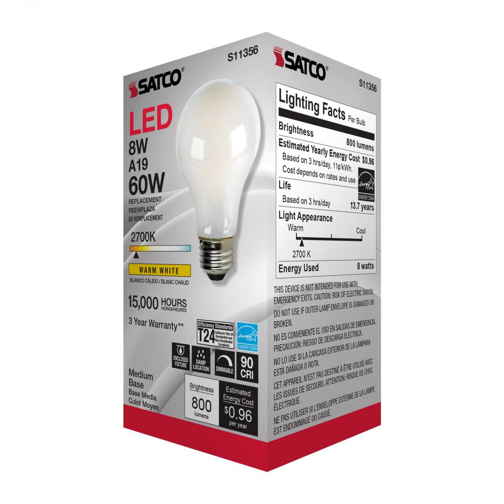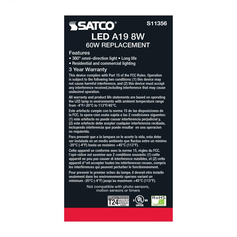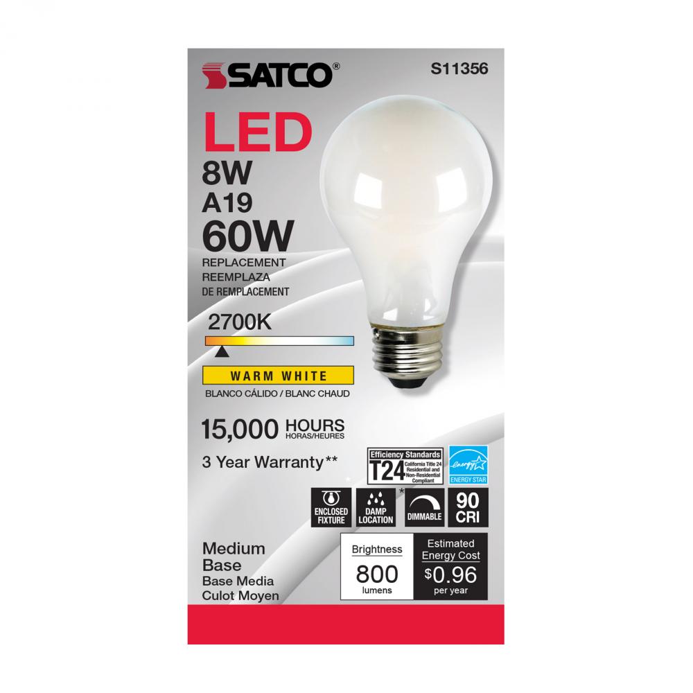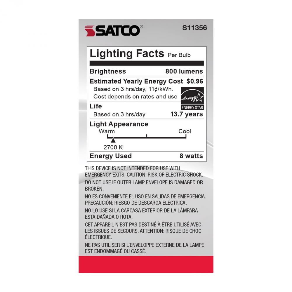 Satco's S11356 8-watt LED bulb is an elegant and traditional lighting solution for the home. Illuminate dining rooms, living rooms, and office spaces with this dimmable, white bulb. Featuring a beam spread of 320 degrees, this bulb delivers 15,000 hour