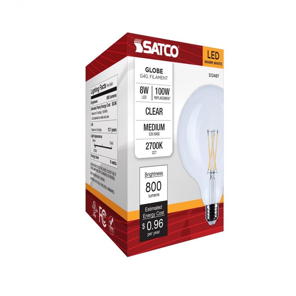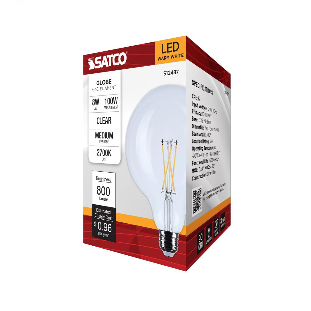 Satco's S12487 8-watt LED lamp is traditional, yet contemporary with its vintage style and energy saving LED technology. Elegantly illuminate any room in the house with this dimmable, globe shaped bulb. Sophisticated and modern, this lamp delivers 15,0