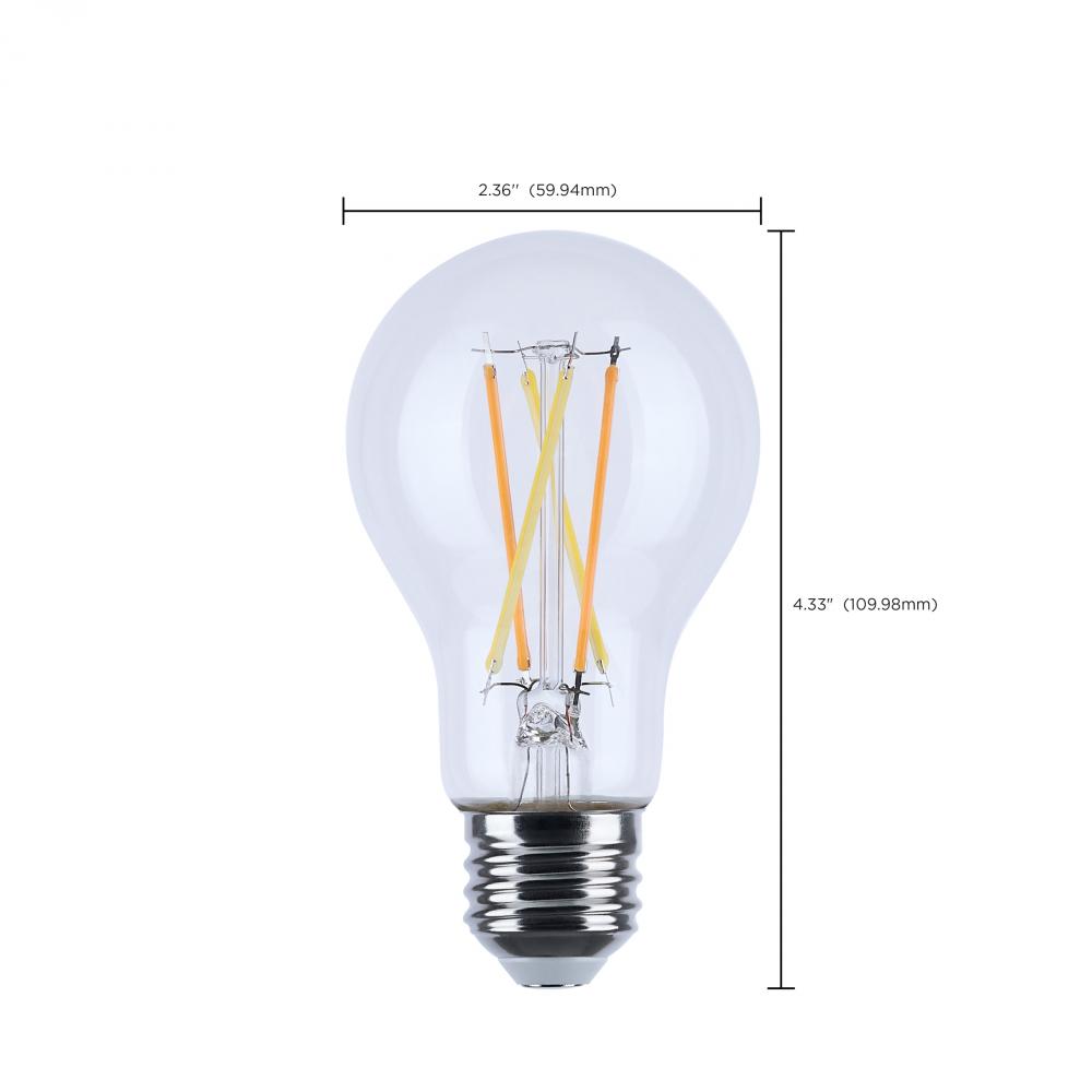 SATCO NUVO's S12150 Dim to Warm filament A19 bulb combines modern efficiency with the nostalgic glow of incandescent dimming. Emitting 360 degree illumination, it smoothly transitions from 3000K to 2000K as it dims, enhancing ambiance in residential, h