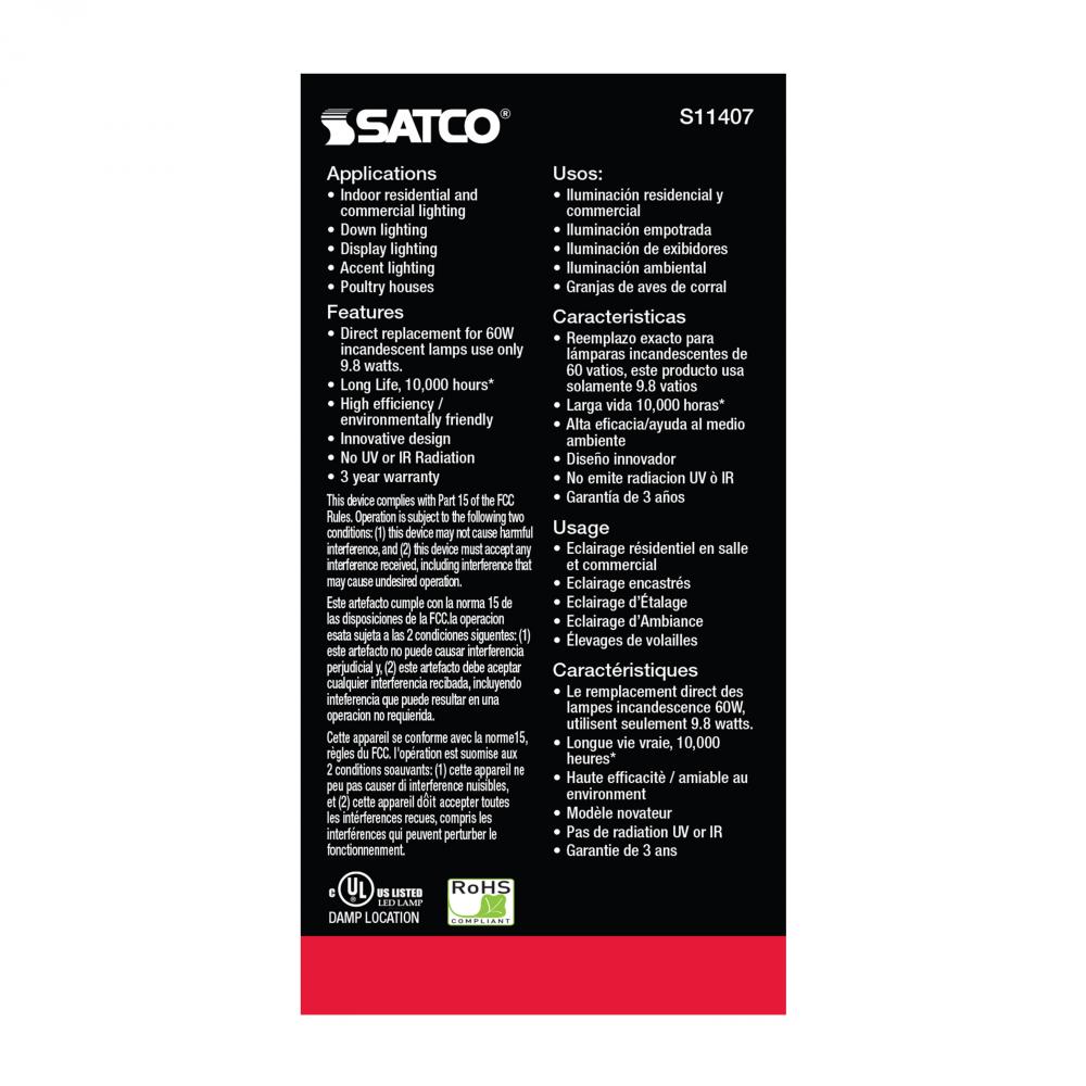 Satco's S11407 9.8-watt LED lamp is traditional, yet contemporary with its sleek finish and energy saving LED technology. Elegantly illuminate any room in the house with this stylish white bulb. Sophisticated and modern, this lamp delivers 10,000 hours