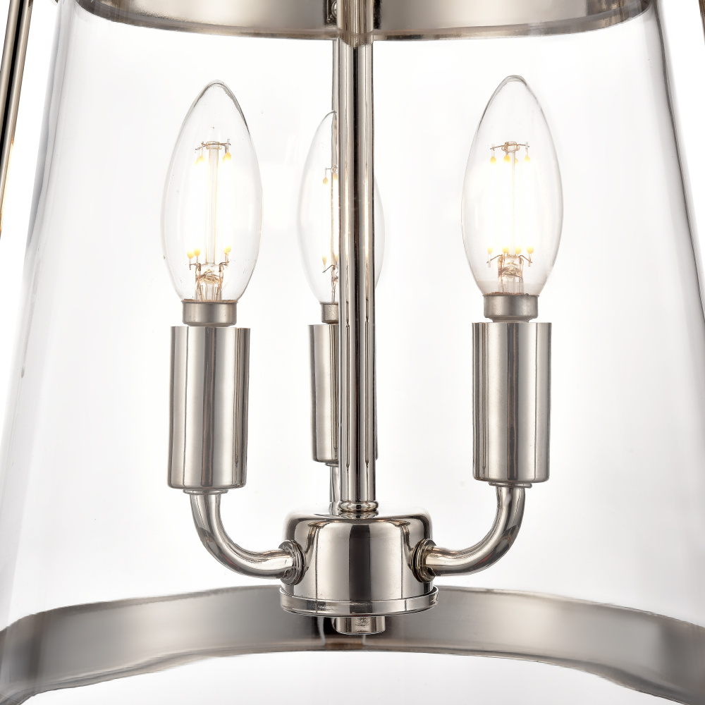Artisan inspired metal design work, highlighted with twisted accents and filigreed chainwork, are the highlights of the Adabella Family. The choice of clear glass or hammered glass globes create wonderful light play and work in perfect harmony with the intricate fixtures finished in polished nickel, vintage brass, or matte black. Available in 3 or 5-light options, these pendants will beautifully define whatever space they illuminate from the entryway on through to the kitchen.
