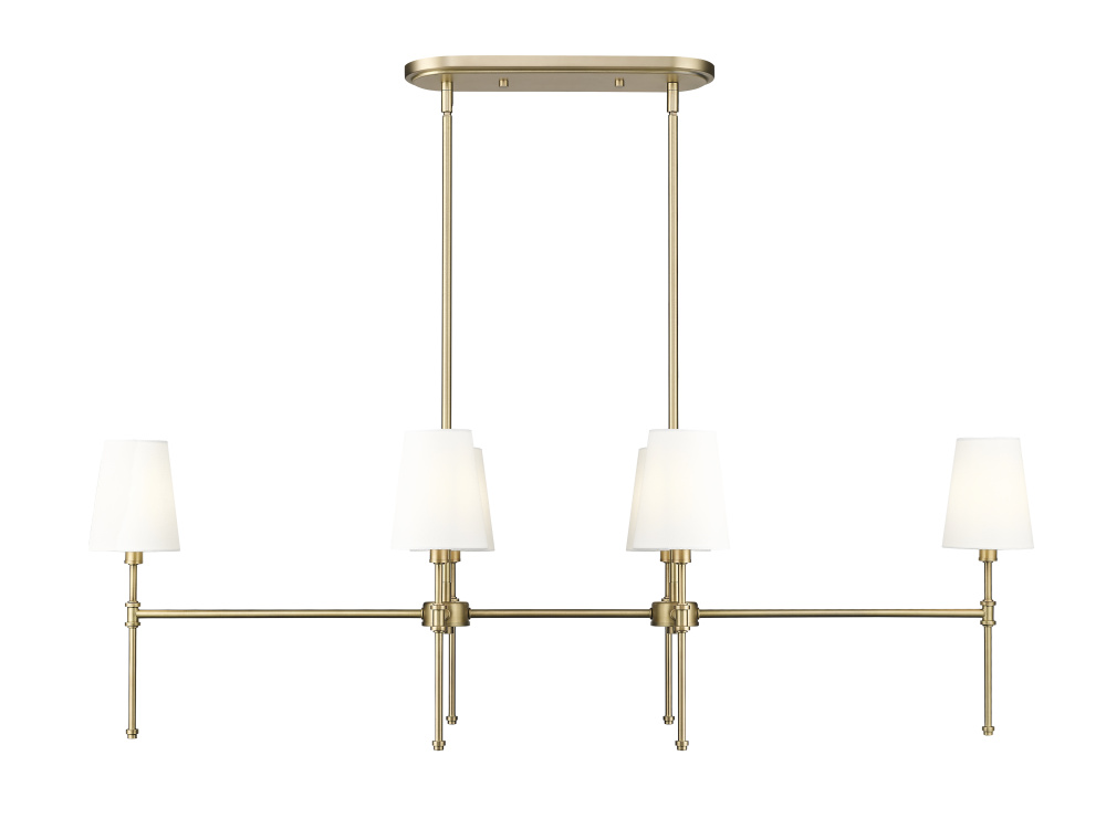 Refined and graceful, the Adorra Family puts a modern twist on classic Regency styling and creates a thoughtful design statement throughout any home. Crisp white linen shades complement the beautifully detailed fixtures in polished nickel, vintage brass, or matte black. Available as a 3-light semi-flush mount, 3-light candelabra, or 1-light sconces, these fixtures enhance any interior design scheme with a polished touch.