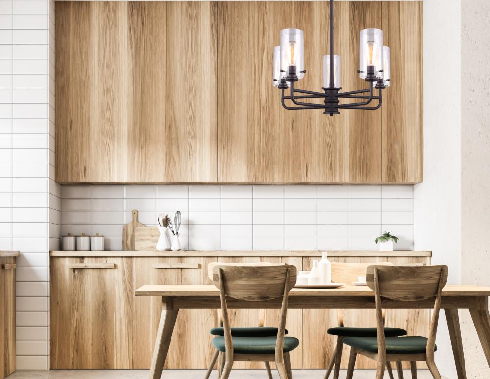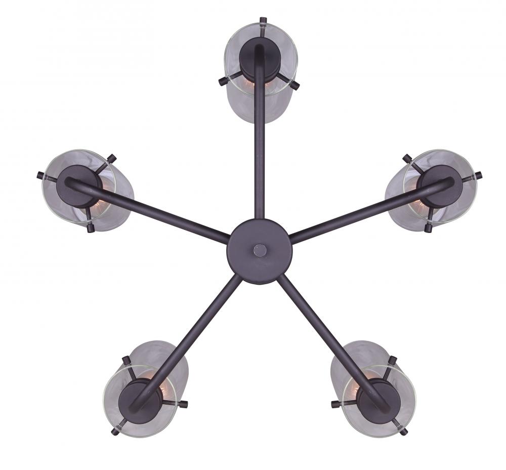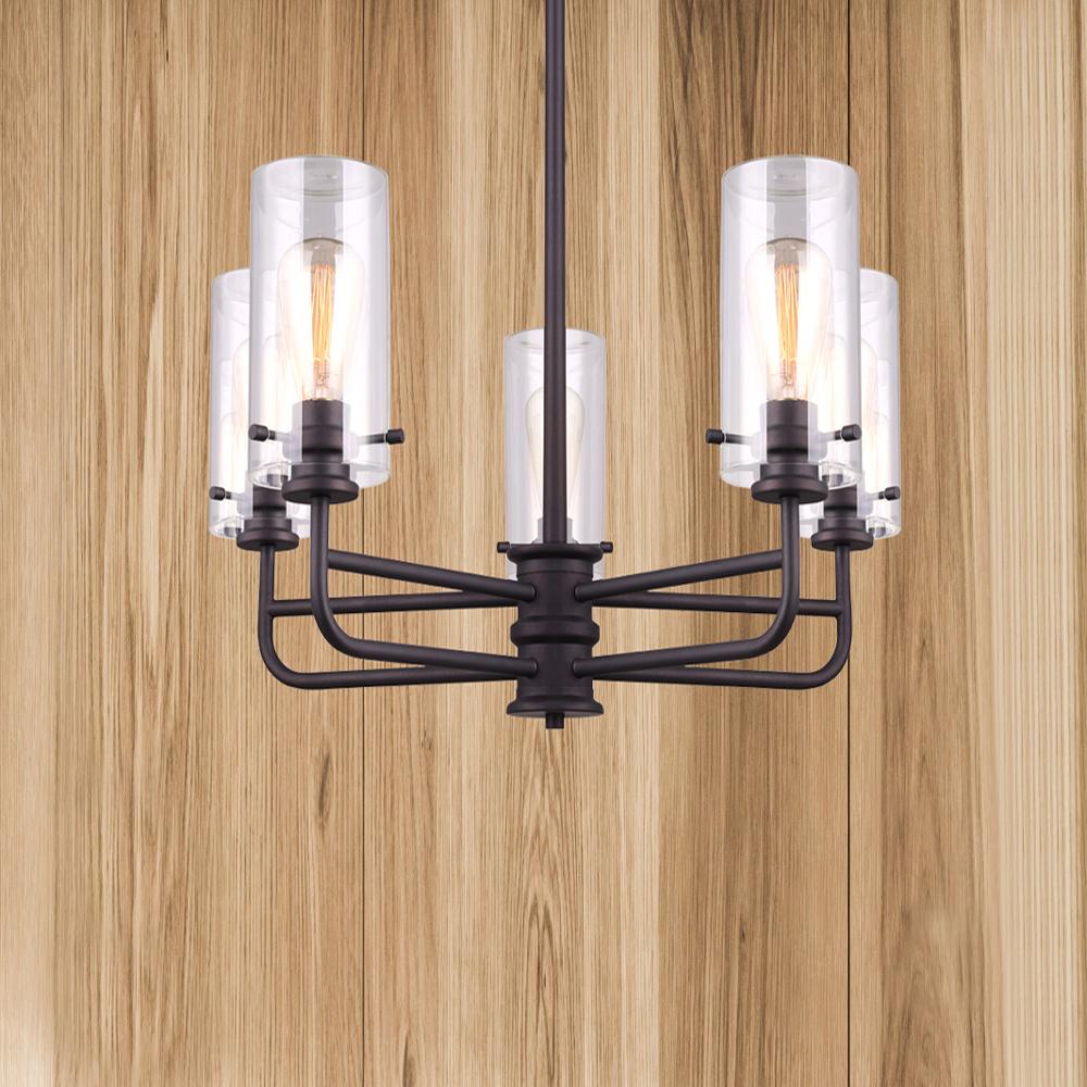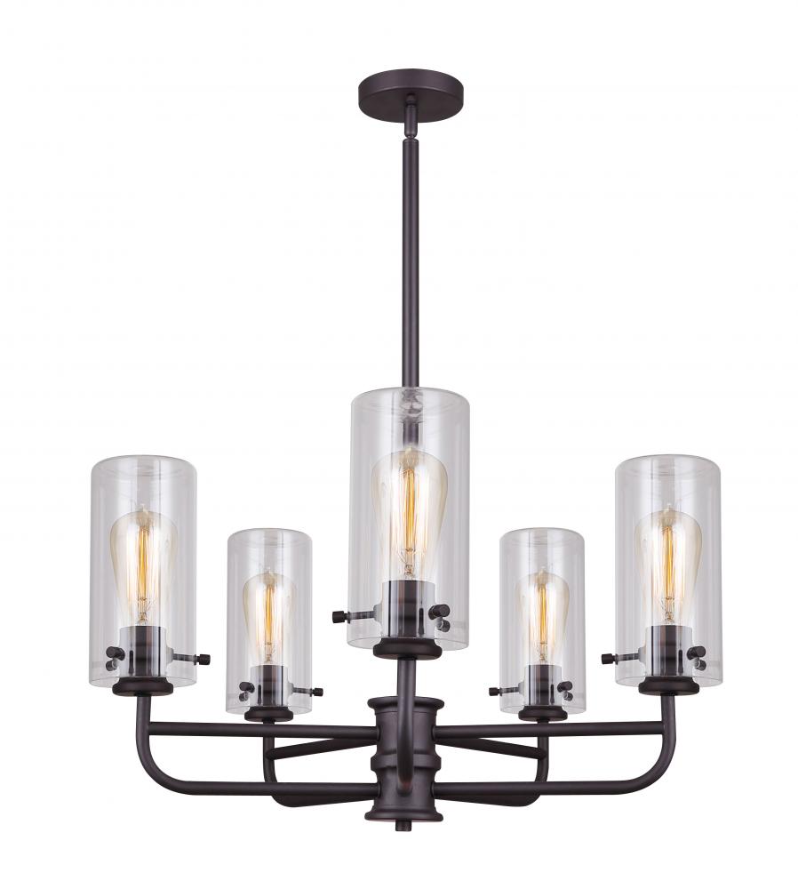 Contemporary Design: The ICH679A05ORB ALBANY chandelier features a sleek and modern design with its five lights and clear glass shades