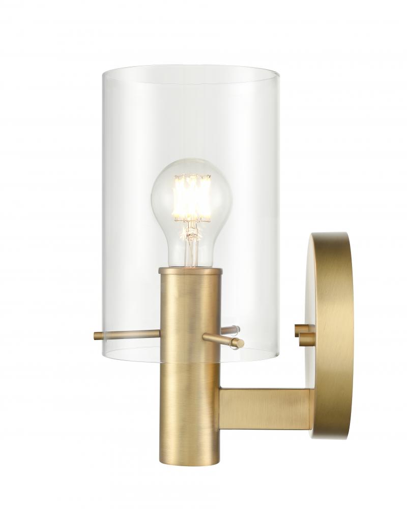 The Apolla Family is statement-making modern design at its best. These minimalist fixtures are finished in either vintage brass or matte black and punctuated by the clean lines of the circular backplate and cylindrical arm. Available as either a 1-light sconce or 2- or 3-light bath fixture, both options are complemented by a floating clear glass shade, providing a minimalistic effect.