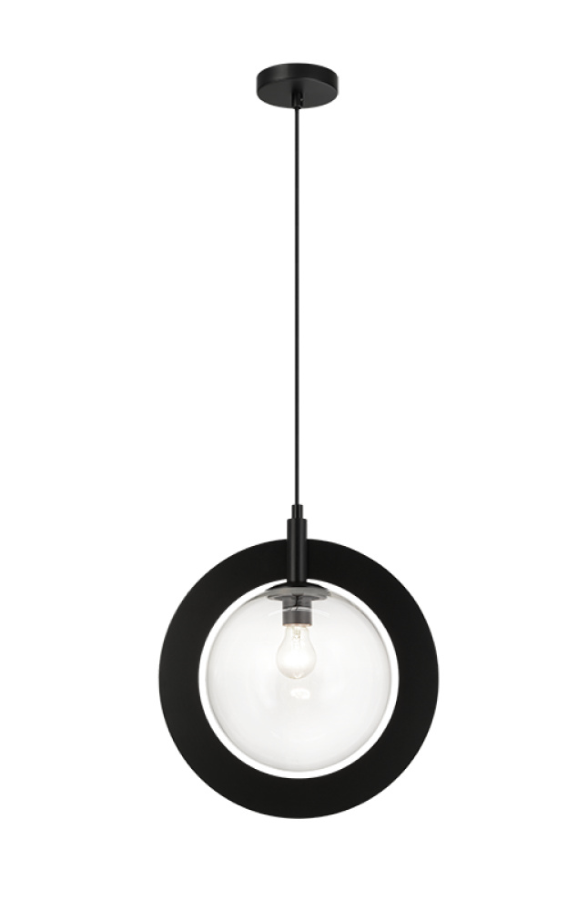 A stunning yet simple pendant designed with circular elements. Astro features Clear or Opal Glass, surrounded by a bold metal ring. Available in 2 finishes: Aged Gold Brass and Black.