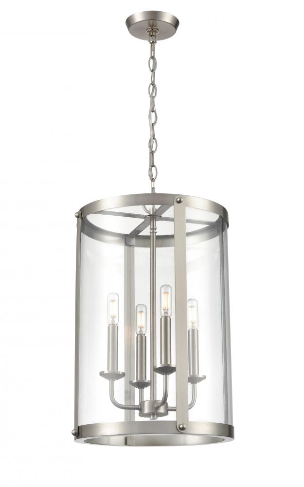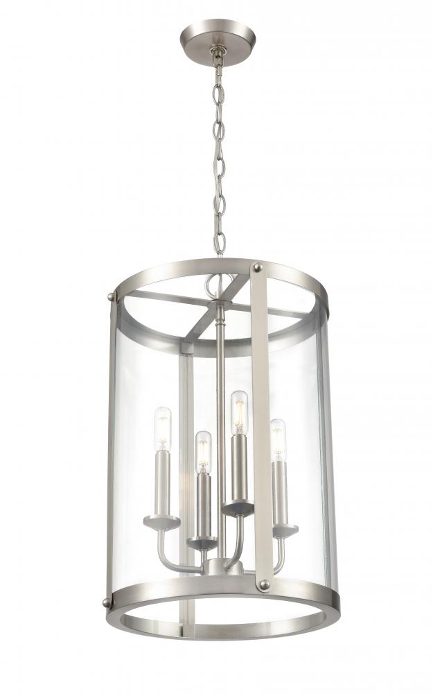 Sparkling clear glass cylinders set into a minimalist steel constructed framework provide abundant light in the Aydenn Collection of pendant lighting. Finished in quintessential matte black or gleaming brushed nickel, these definitive design statements are a bright addition to the foyer or hall.