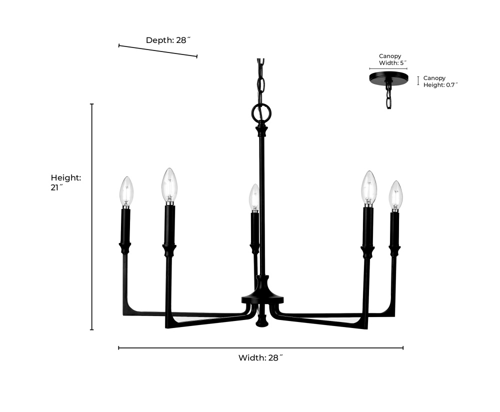 Millennium 25305-MB - Azara 28" Wide 5-Light Chandelier - Matte Black