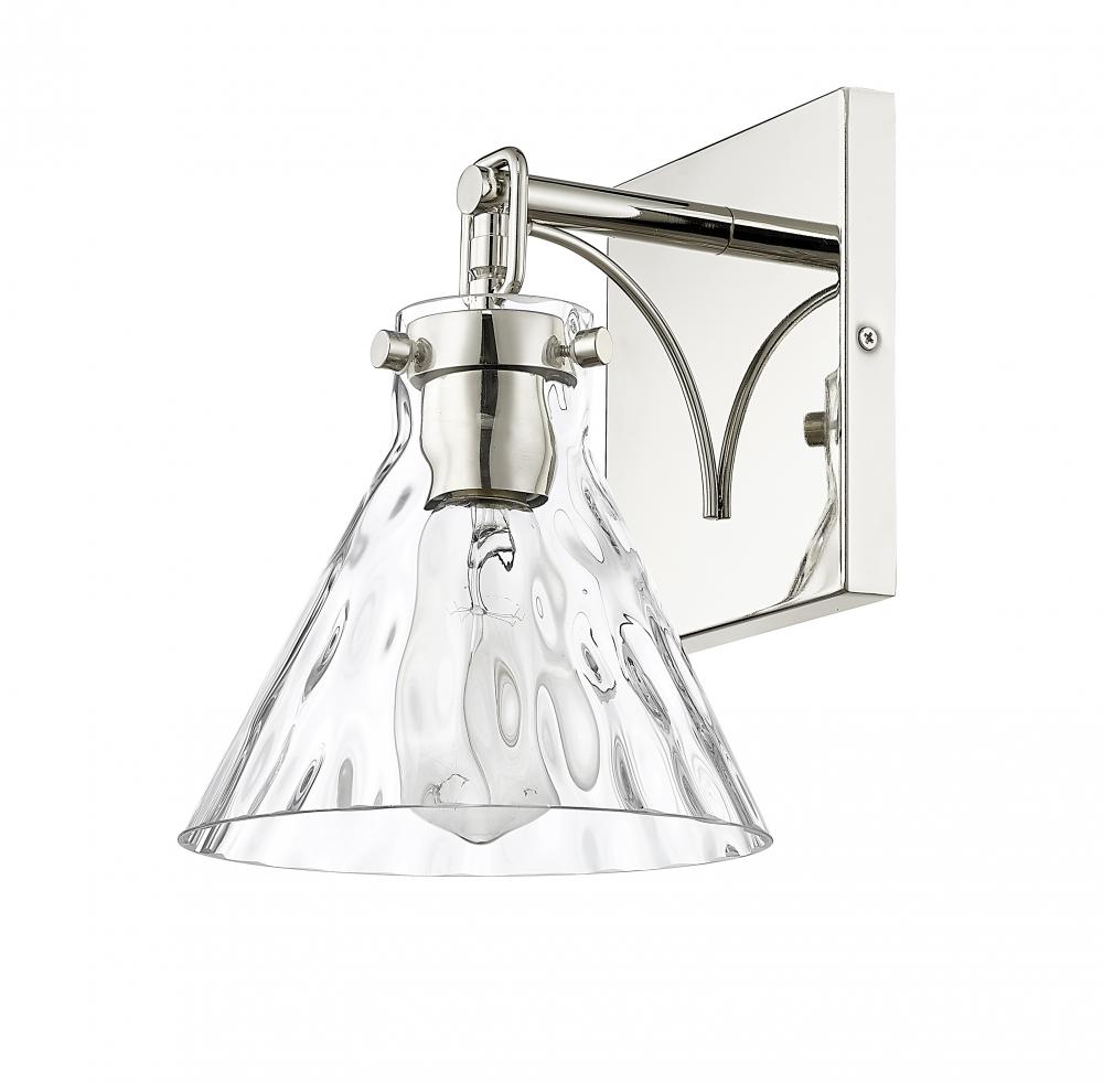 The Barlon Collection of vanity and pendant lighting provides a unique touch of style with artfully flared, clear water glass shades. The fixtures are a modern take on classic hook-style lantern lighting and are available in matte black, polished nickel, vintage brass, or modern gold with 1-light, 2-light, and 3-light options. This collection is the perfect look for a modern farmhouse or industrial-style loft.