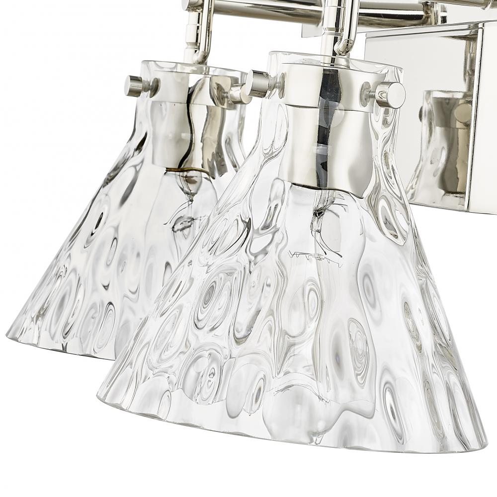 The Barlon Collection of vanity and pendant lighting provides a unique touch of style with artfully flared, clear water glass shades. The fixtures are a modern take on classic hook-style lantern lighting and are available in matte black, polished nickel, vintage brass, or modern gold with 1-light, 2-light, and 3-light options. This collection is the perfect look for a modern farmhouse or industrial-style loft.