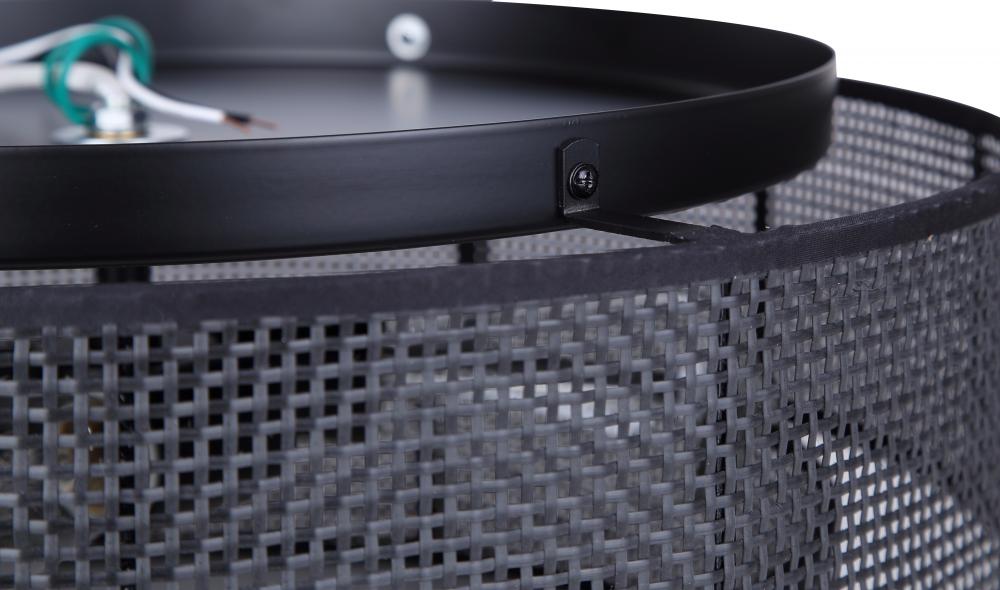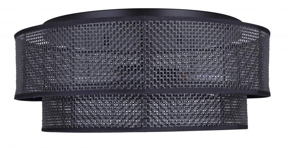 BELLAMY 19 in. 3-Light 60-Watt Contemporary Black Flush Mount with Black Faux Rattan Shade