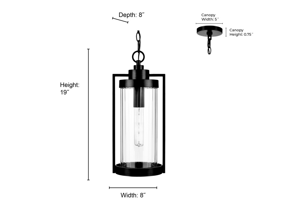 Braselton 8" Wide 1-Light Outdoor Hanging Lantern - Powder Coated Black