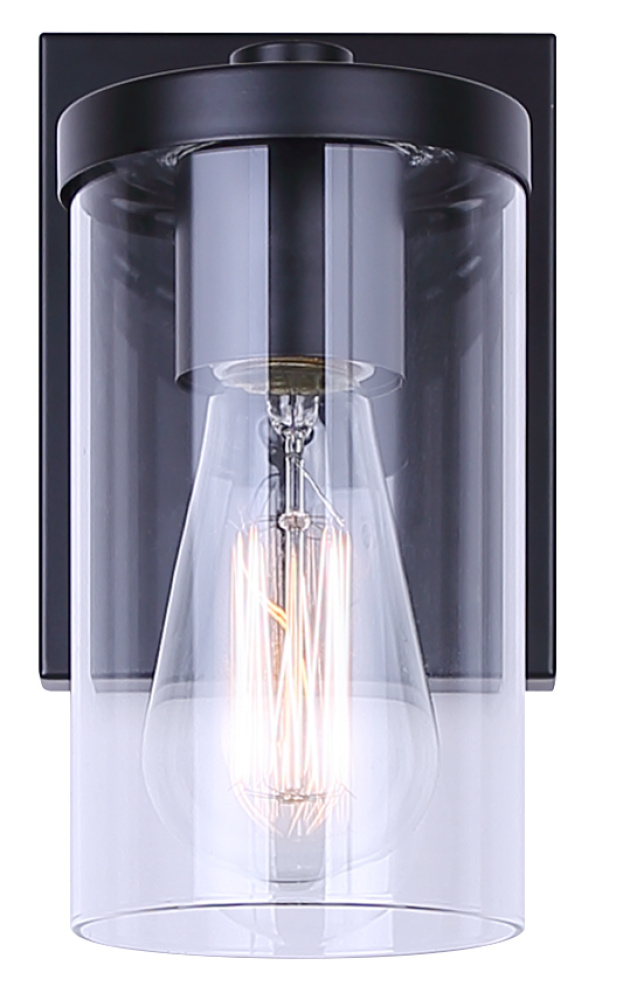Add stylish simplicity to your home with the Britton 1-Light Vanity Wall Light in a matte black finish. Featuring a clear glass shade and clean, modern lines, this fixture delivers versatile illumination and sleek style in equal measure. Ideal as a vanity light or decorative sconce, it works beautifully beside or above mirrors, along hallways, or as an accent in living rooms or bedrooms.With a compact footprint of 4.75 inches wide by 8.62 inches high and 6.12 inches deep, this light is perfect for smaller spaces or layered lighting designs. The clear glass shade maximizes brightness and is especially striking with a decorative bulb. Designed for use with one 100W Type A bulb, it delivers practical lighting for grooming, ambiance, or highlighting architectural features.Built to last and easy to install, the Britton wall light adds timeless elegance and modern sophistication to any room in your home.
