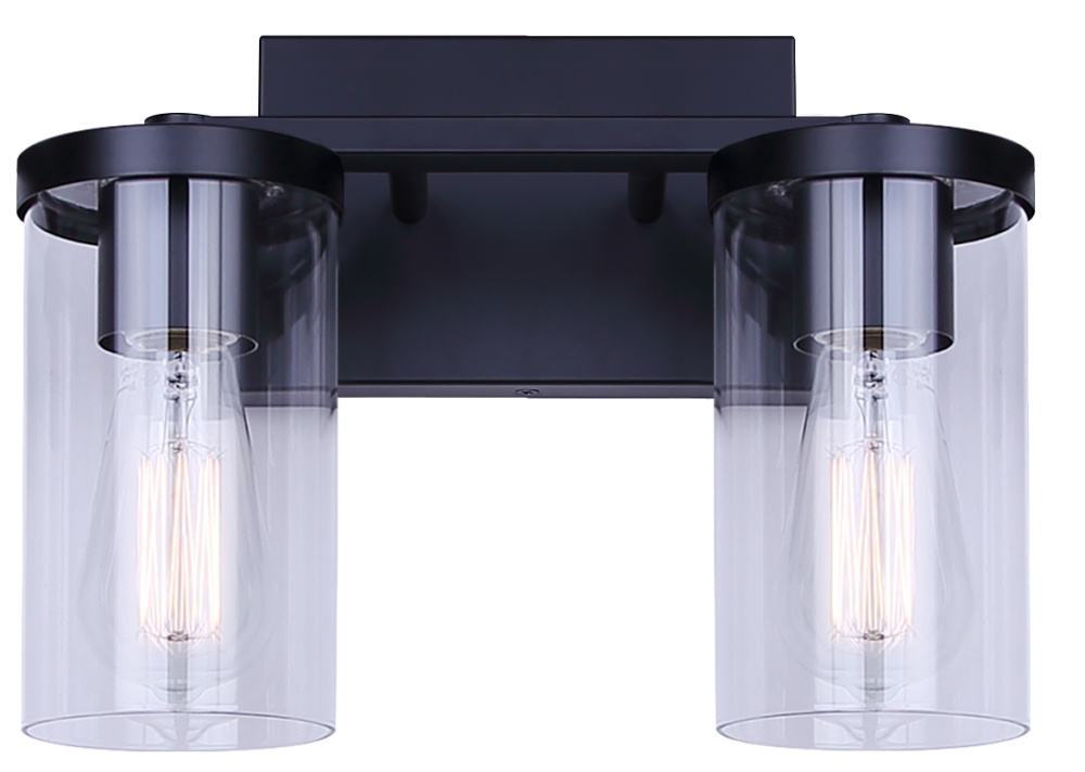 Make a bold statement in your bathroom with the Britton 2-Light Vanity Light in Matte Black. With its crisp clear glass shades and dramatic matte black finish, this wall fixture blends modern design with industrial charm. Measuring 12.5 inches wide, it’s compact enough for smaller spaces but powerful enough to provide bright, even lighting for all your bathroom tasks.The open-shade design showcases the bulbs and complements Edison-style or vintage lamps for added character. Built to thrive in damp environments, Britton is damp rated, making it ideal for use above sinks or in powder rooms. Compatible with 100W Type A bulbs (not included), this 2-light vanity adds both style and function, and installs easily with included mounting hardware.