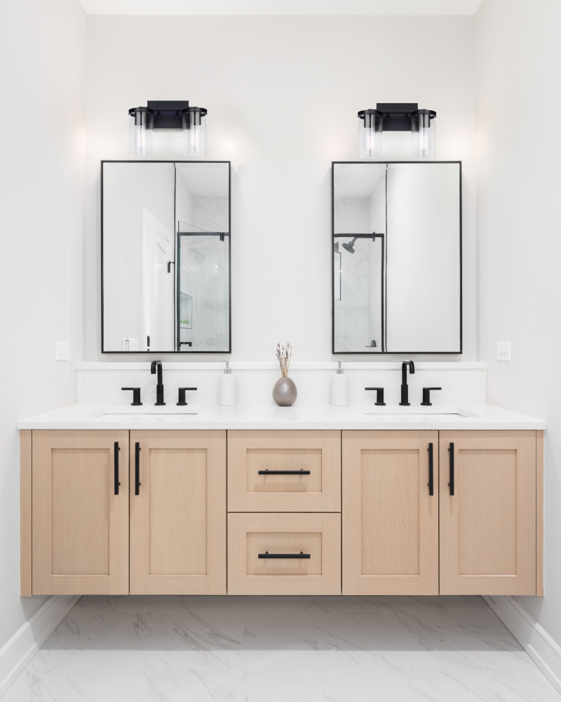 Crisp and Clear Illumination: With two clear glass shades, this vanity light delivers bright, focused lighting perfect for grooming, makeup, or daily bathroom routines. Compatible with 100W Type A bulbs (not included).