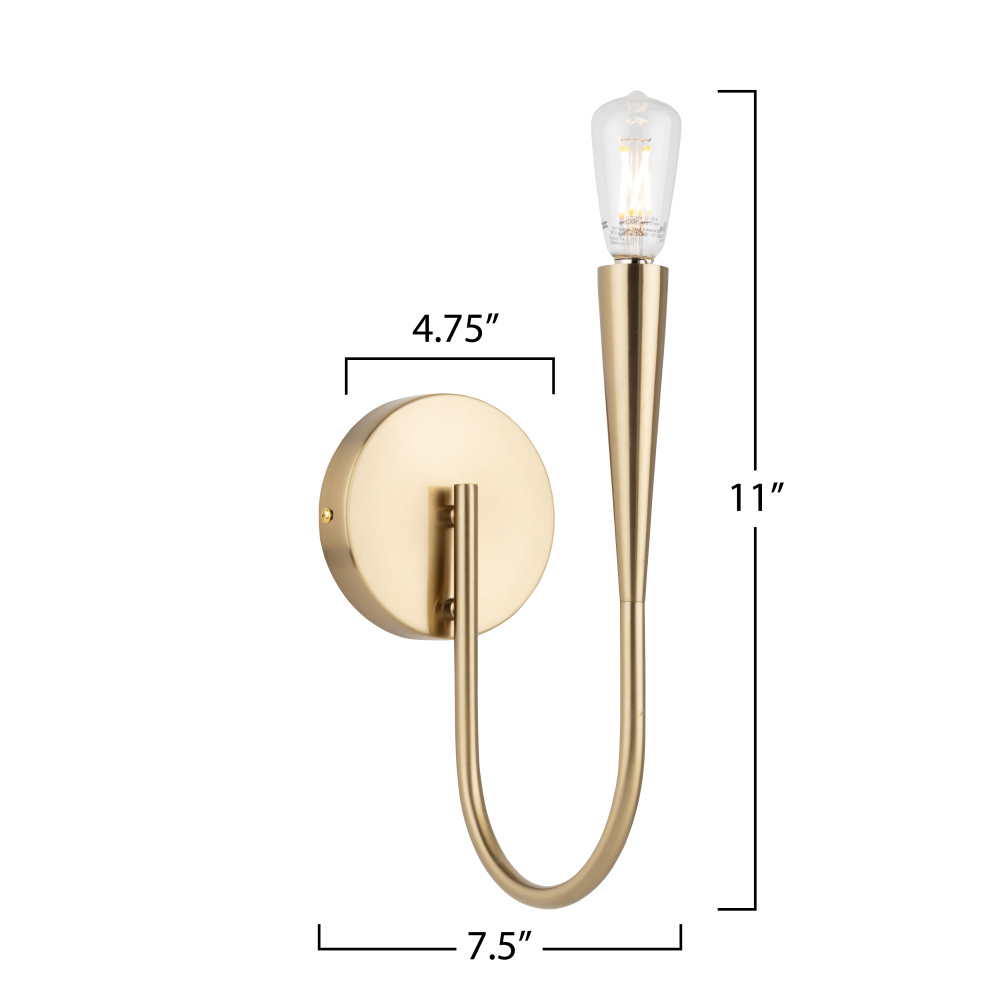 The Bronte Collection chandelier presents a classic design with tapered arms, accentuated by a warm brushed brass frame that exudes a touch of modern sophistication. Single light wall sconce shown. (Also available in a semi-gloss black finish)