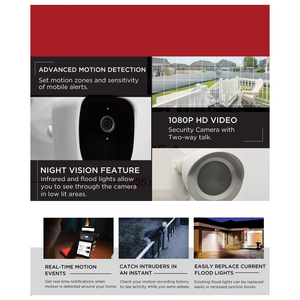 Stay connected and feel protected with Satco's new LED security floodlights. Featuring a 1080p HD camera with a 150 degree viewing angle, two-way talk, infrared night detection and advanced motion detection settings, you can rest assured anytime, day o