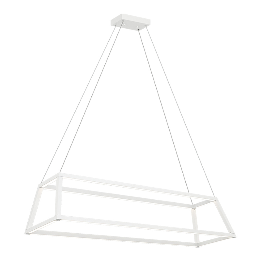 Carlington is simplicity at it’s best. The LED is powered by a driver in the canopy and lights the underside of the metal frame. It is suspended with silver cord and offers a direct uncomplicated vibe.