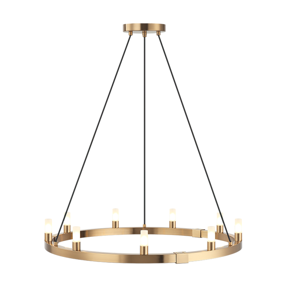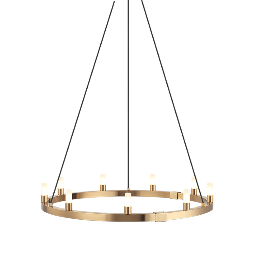 Need a statement piece – The Cascadian series will certainly deliver! Round and rectangular frames are both available and neither style will disappoint. Small glass shades line the Aged Gold Brass or Matte Black frame and are suspended by black fabric cords. Single layer and 2 two tier fixtures equally pack the WOW factor.