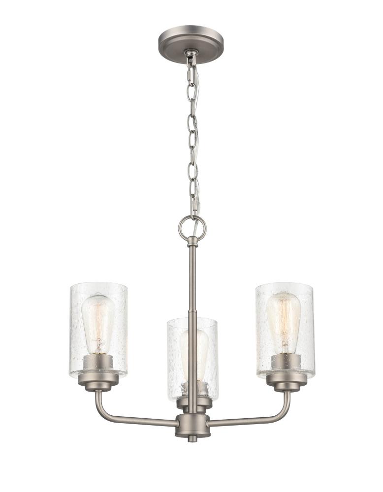 The Moven Collection elevates bold simplicity to a whole new level of design. Strong, elegant lines are set against handcrafted style seeded glass, creating an overall effect that is both refined and striking. The collection is available in either matte black or satin nickel fnish. Bulbs must be purchased separately.