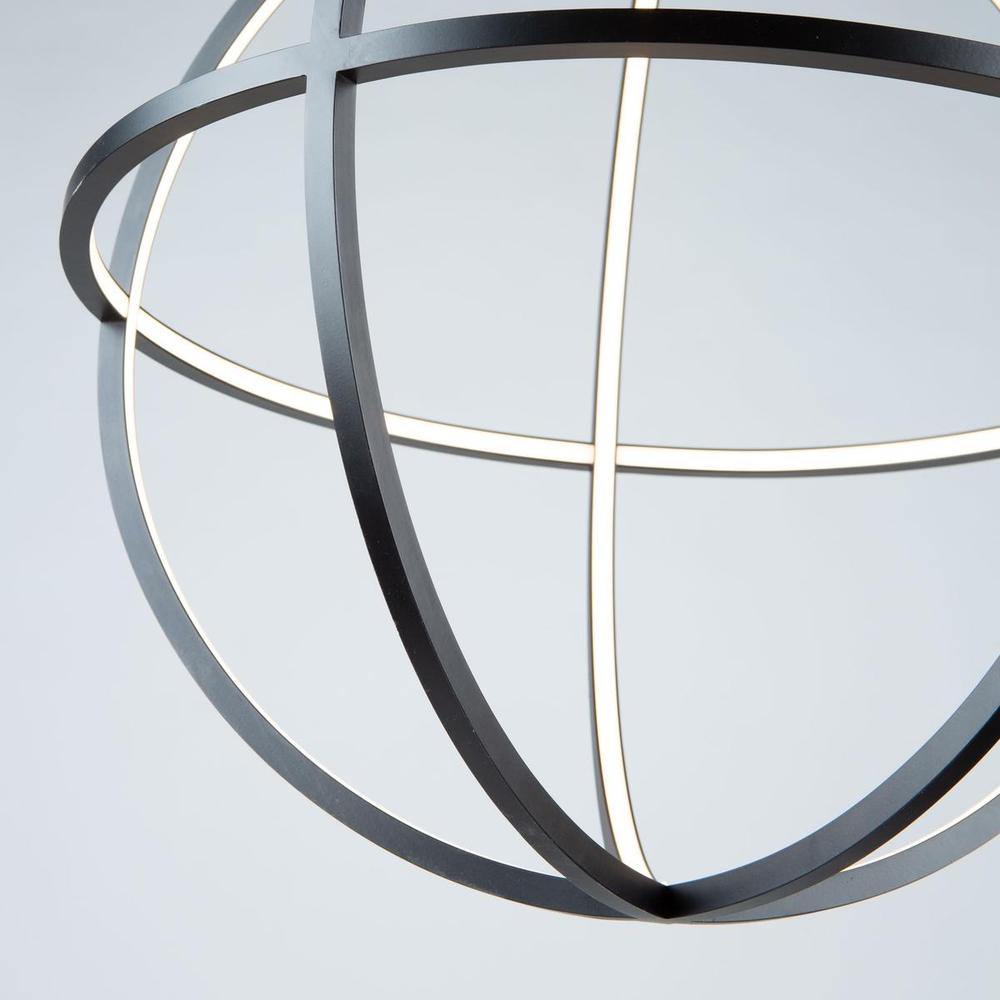 The "Celestial" collection orb is truly unique and stylish. The matte black finish on this double frame is eye catching. Illuminated by bright energy efficient integrated LED, this chandelier would fit in any surrounding, especially in transitional to contemporary settings. Smaller 13.75" size also available.