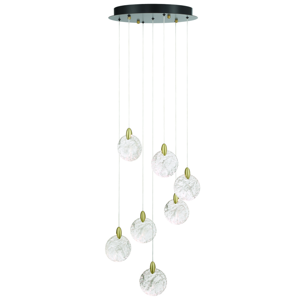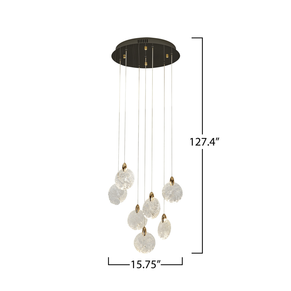The Snowflake chandelier is a masterpiece of elegance, featuring rock-style cut glassware that glistens like frosted crystals, illuminated by energy-efficient LED lighting. Delicate brass holders cradle each glass piece, all suspended from a matte black canopy that adds a dramatic contrast. Its thoughtful design includes a 3CCT switch, allowing you to choose between warm, neutral, or cool color temperatures (3K, 4K, 6K), and the dimmable functionality lets you tailor the ambiance to perfection. The easily adjustable wires ensure a seamless fit for any ceiling height, making this chandelier as versatile as it is enchanting.