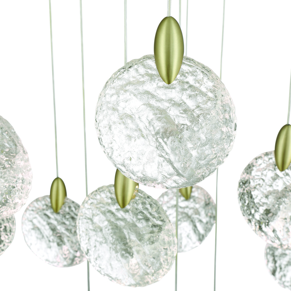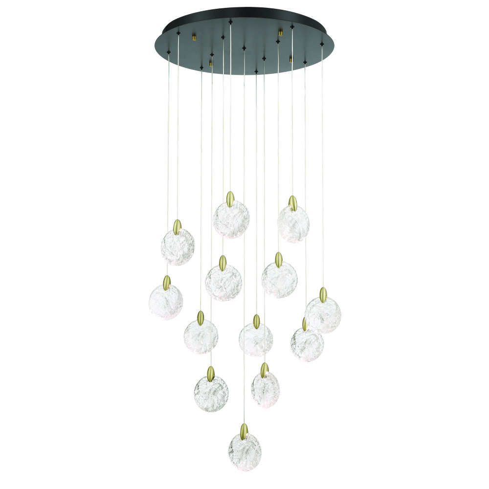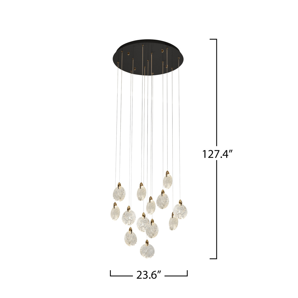 The Snowflake chandelier is a masterpiece of elegance, featuring rock-style cut glassware that glistens like frosted crystals, illuminated by energy-efficient LED lighting. Delicate brass holders cradle each glass piece, all suspended from a matte black canopy that adds a dramatic contrast. Its thoughtful design includes a 3CCT switch, allowing you to choose between warm, neutral, or cool color temperatures (3K, 4K, 6K), and the dimmable functionality lets you tailor the ambiance to perfection. The easily adjustable wires ensure a seamless fit for any ceiling height, making this chandelier as versatile as it is enchanting.