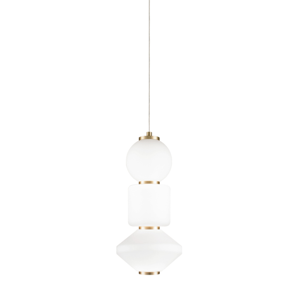 A unique series of pendants. Dango is comprised of opal glass in the form of geometric shapes complemented by Oxidized Gold detailing. 2 styles will be available - all the same glass or a mixed glass version. Additional glass can be purchased separately to create a unique personalized fixture. Available in 2 sizes.