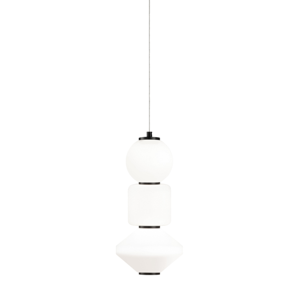 A unique series of pendants. Dango is comprised of opal glass in the form of geometric shapes complemented by Oxidized Gold or Oxidized Black detailing. 2 styles will be available - all the same glass or a mixed glass version. Additional glass can be purchased separately to create a unique personalized fixture. Available in 4 sizes.