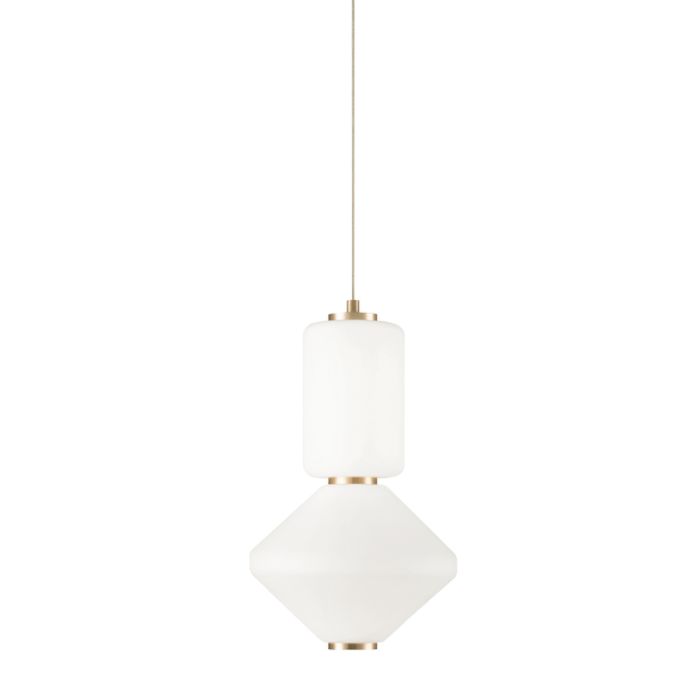 A unique series of pendants. Dango is comprised of opal glass in the form of geometric shapes complemented by Oxidized Gold or Oxidized Black detailing. 2 styles will be available - all the same glass or a mixed glass version. Additional glass can be purchased separately to create a unique personalized fixture. Available in 4 sizes.