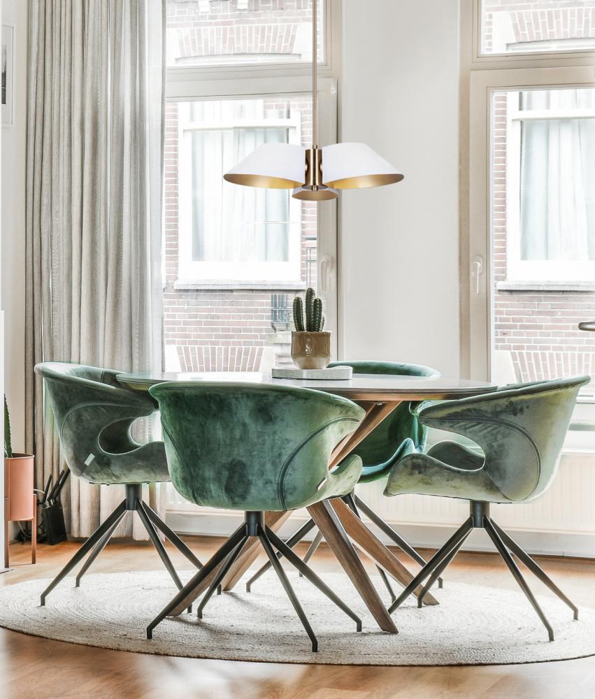 Elegant Design: The DAXTON chandelier boasts a sophisticated design, featuring a harmonious blend of Matte White and Gold tones that effortlessly complement any decor style.