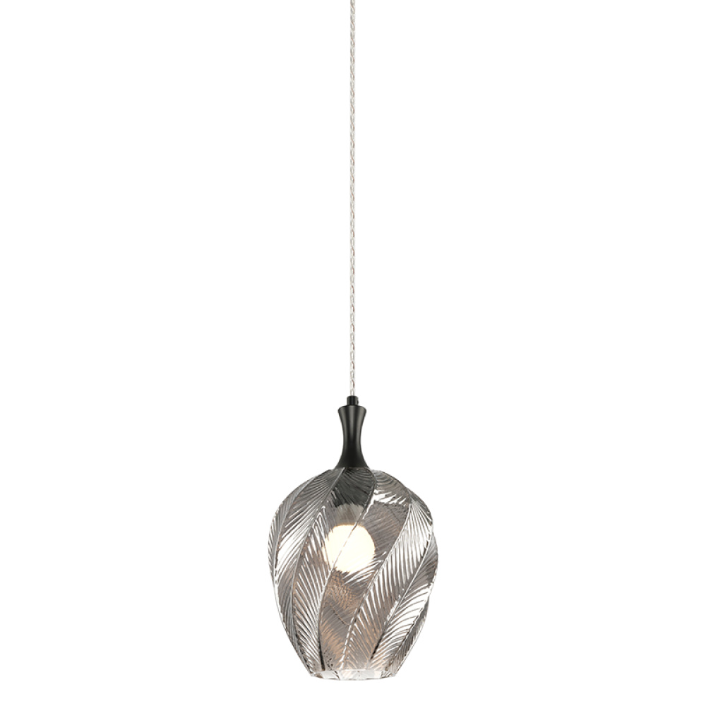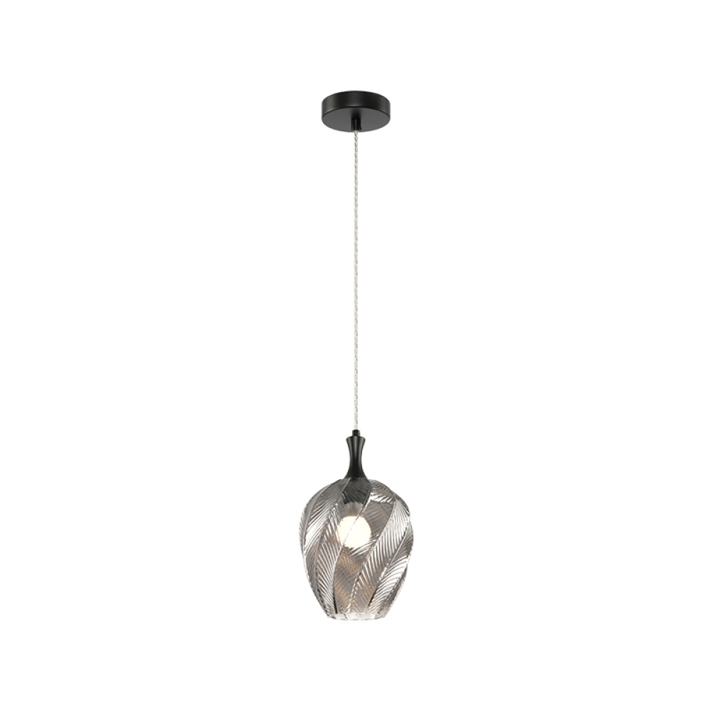 A single pendant in a Smoked or Amber-shaded glass, the Eesha would have a beautiful, organic look with a warm ambient glow. The design is crafted to resemble a softly curving leaf with delicate veins. Comes in 3 different shaped glass.