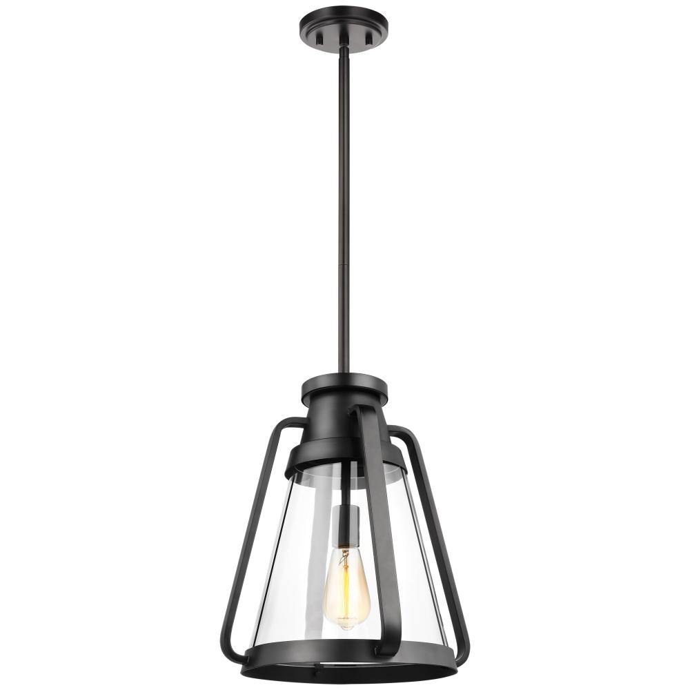 Glass and overlaying metal create a nice depth with the Everett 60-7553 medium pendant. The clear, tapered glass provides 360-degree illuminations. When paired with a vintage bulb, it creates a maritime-vintage style. A matte black finish on the fixture bo