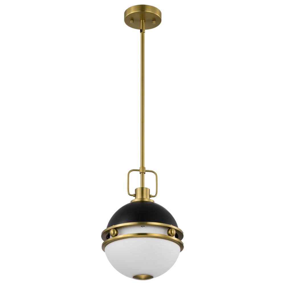 Nuvo 60/7876 - Everton 1 Light Pendant; 10 Inches; Matte Black & Brass Finish; Etched Opal Glass