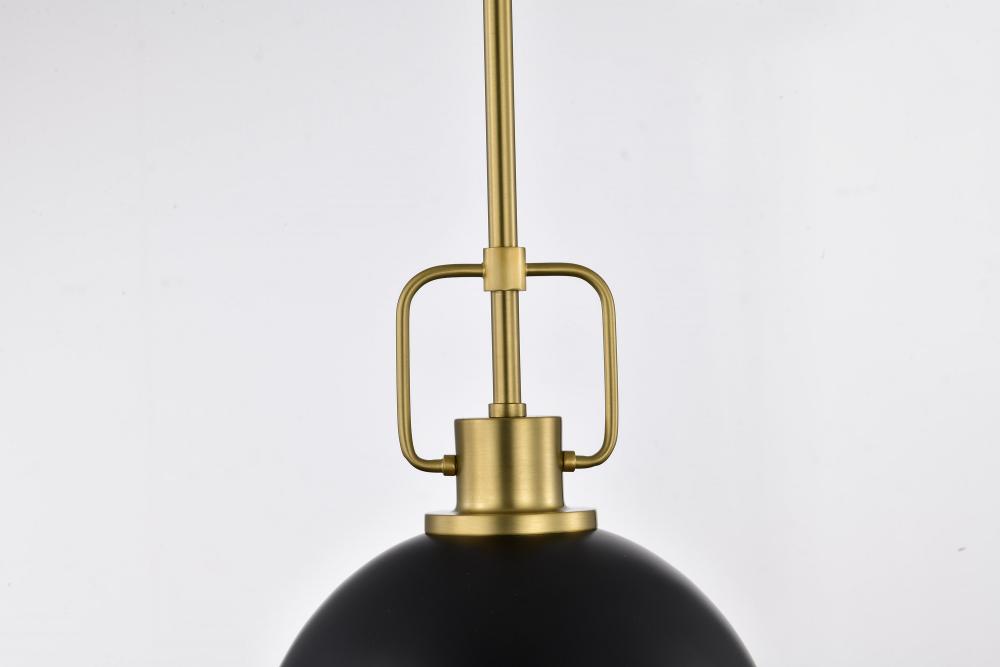 Everton 1 Light Pendant; 10 Inches; Matte Black & Brass Finish; Etched Opal Glass