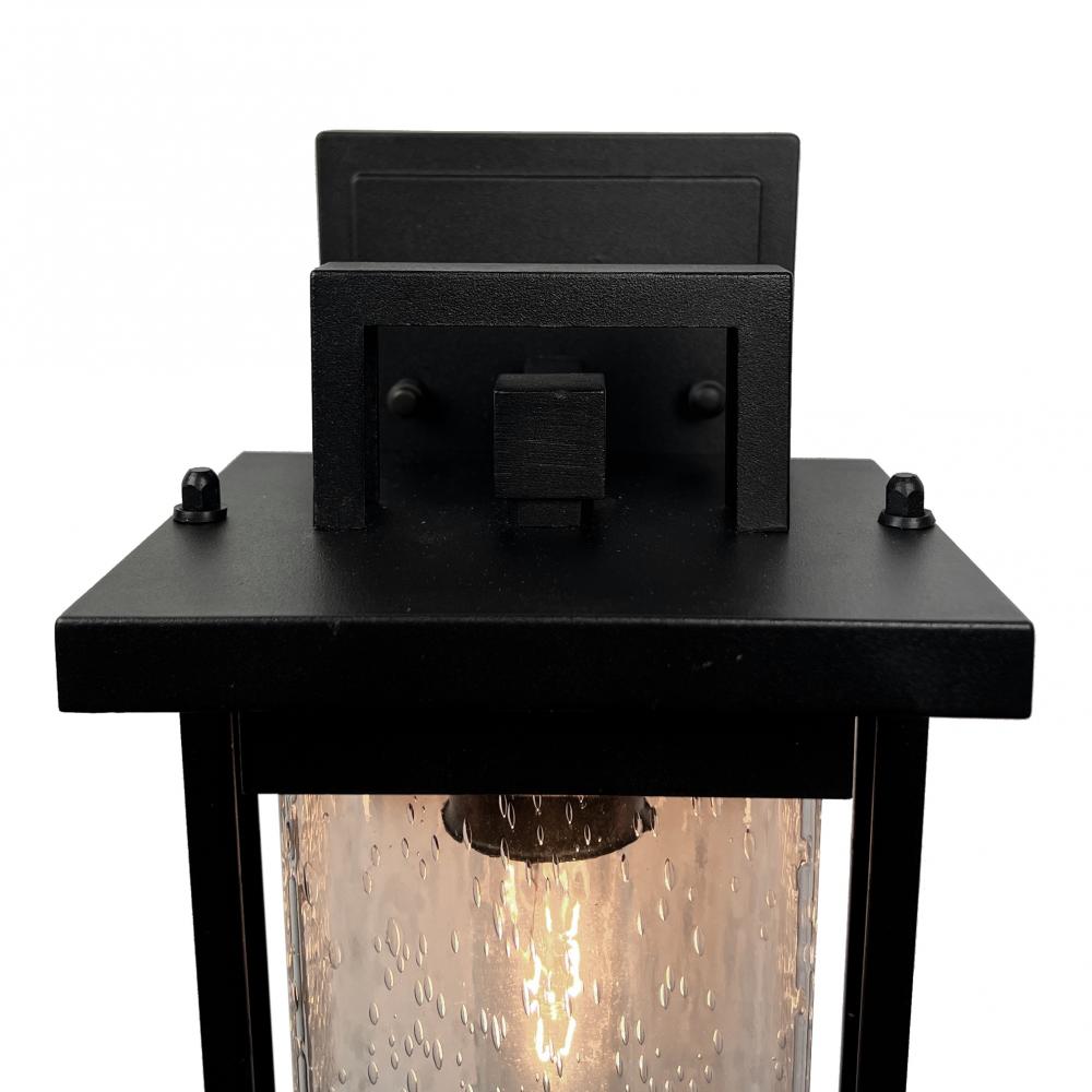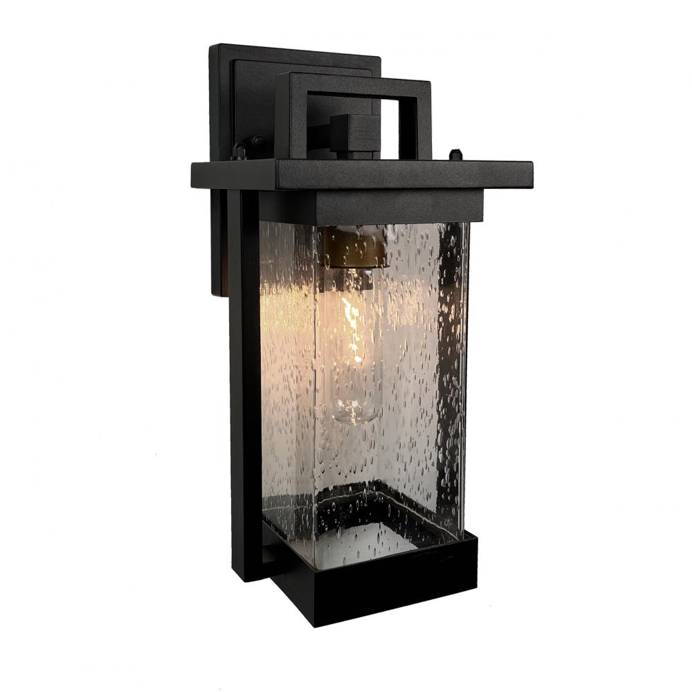 The Port Charlotte collection features a rectangular shape design, with clear seeded glassware, vintage brass socket cover, and black framing. The bulb required is a regular medium base type. This series is back by a 25 year warranty on corrosion & 5 year warranty on paint defects.