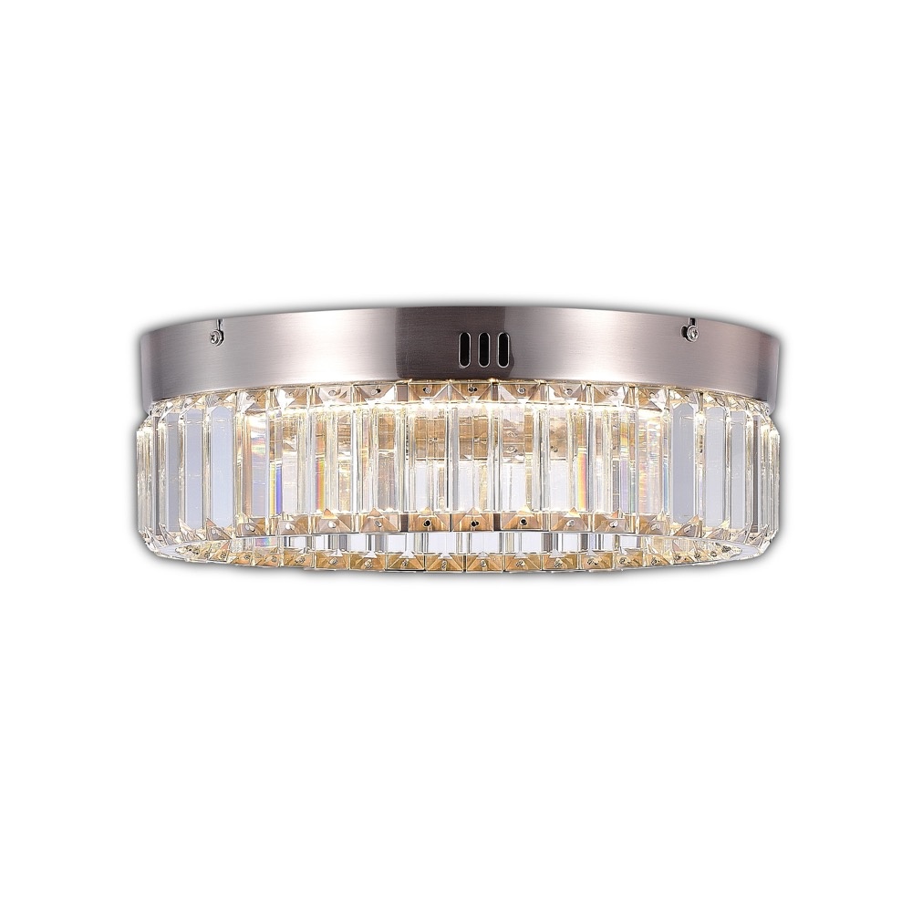 The Stella Collection single tier flushmount features dazzling crystals which are illuminated by bright LED. The frame is finished in a stunning satin nickel. Due to its LED light source it is energy efficient. This model is dimmable and back with a 5 year warranty on the LED.